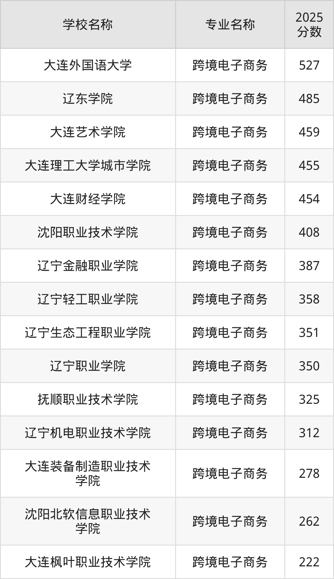 下文将为大家展示辽宁省大学跨境电子商务专业2025年在辽宁高考的最低录取分数线!