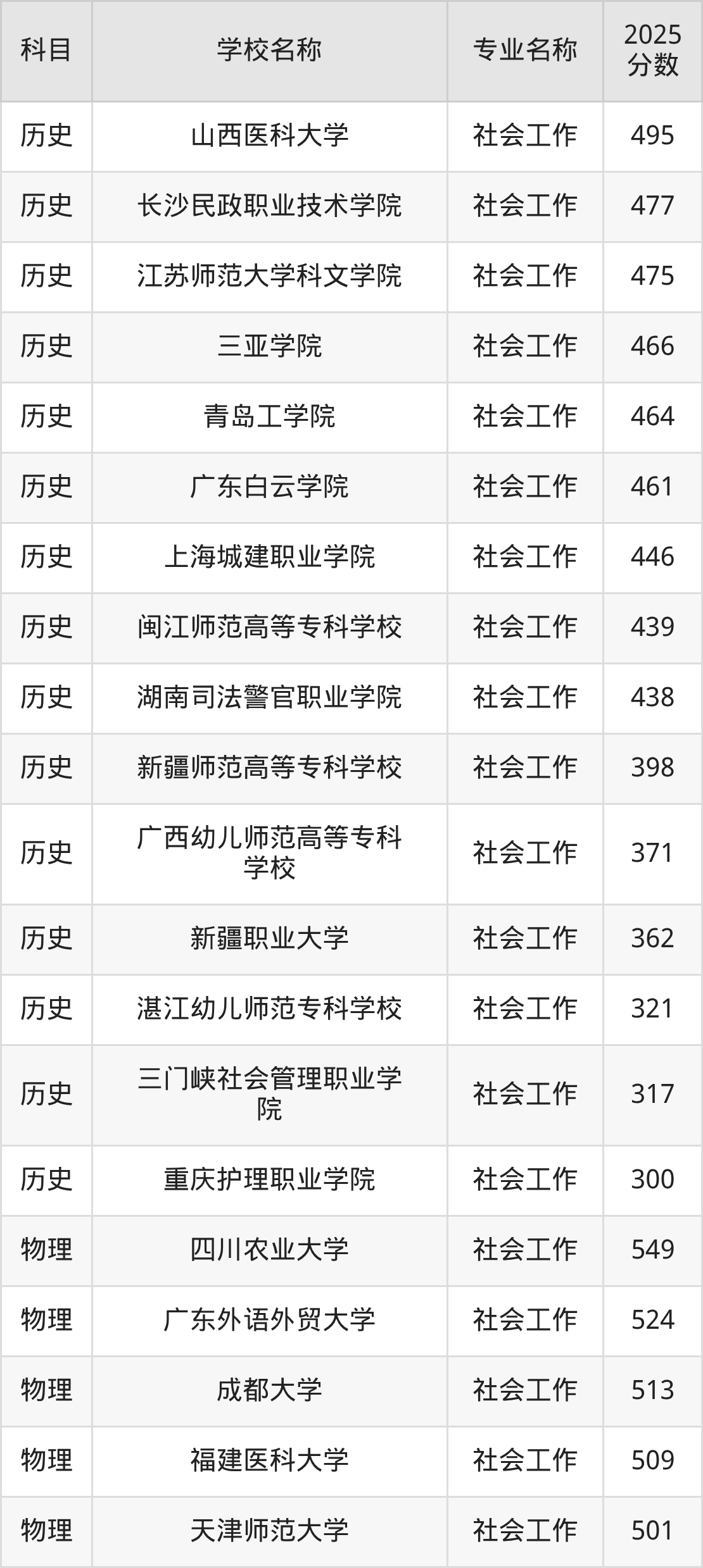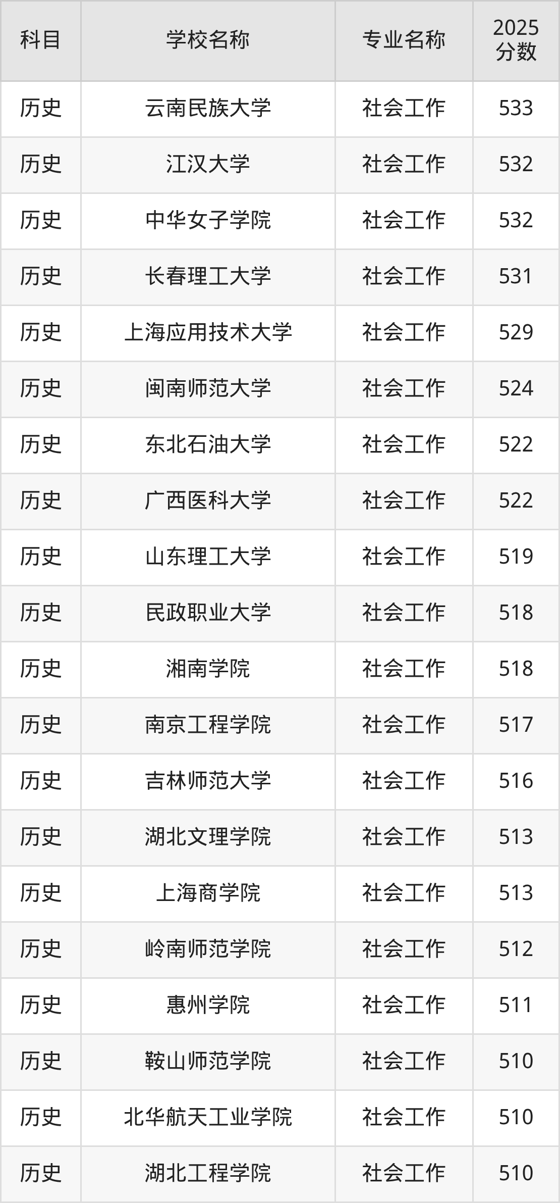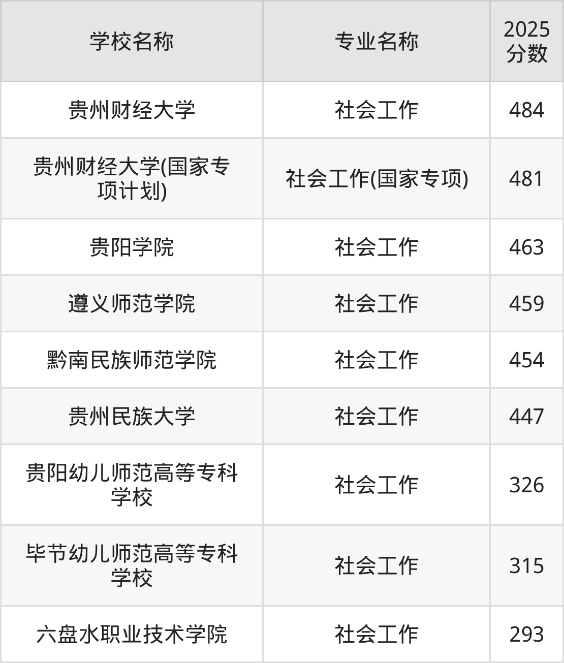 下文将为大家展示贵州省大学社会工作专业2025年在贵州高考的最低录取分数线!