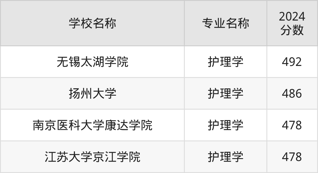 | 无锡太湖学院 | 护理学 | 502 |