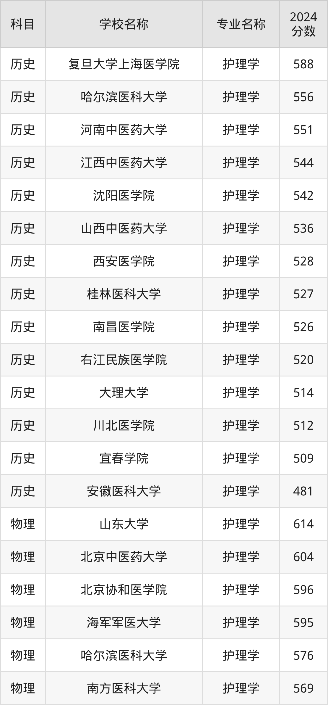 | 南京医科大学 | 护理学 | 569 |