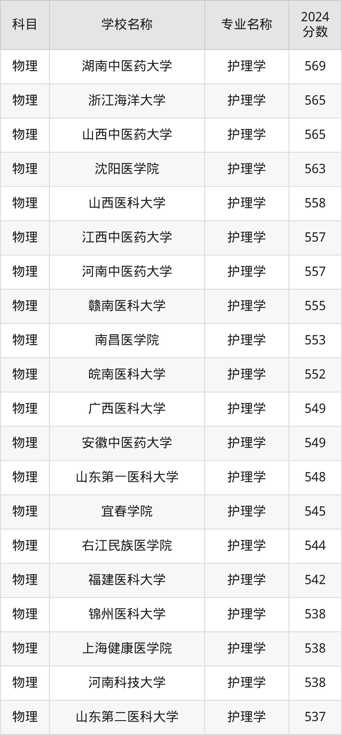 | 扬州大学 | 护理学 | 555 |