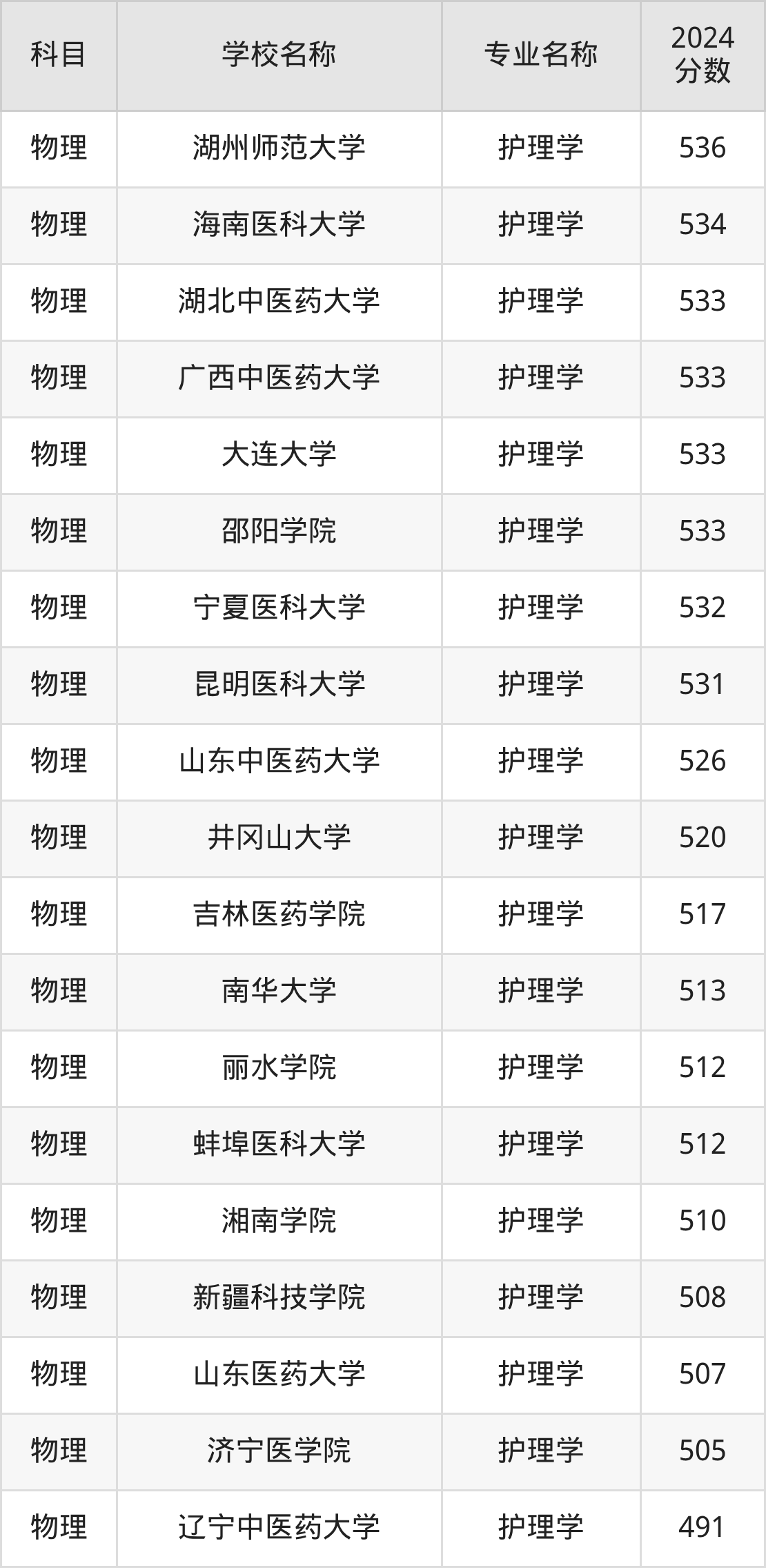 | 学校名称 | 专业名称 | 2024 分数 |