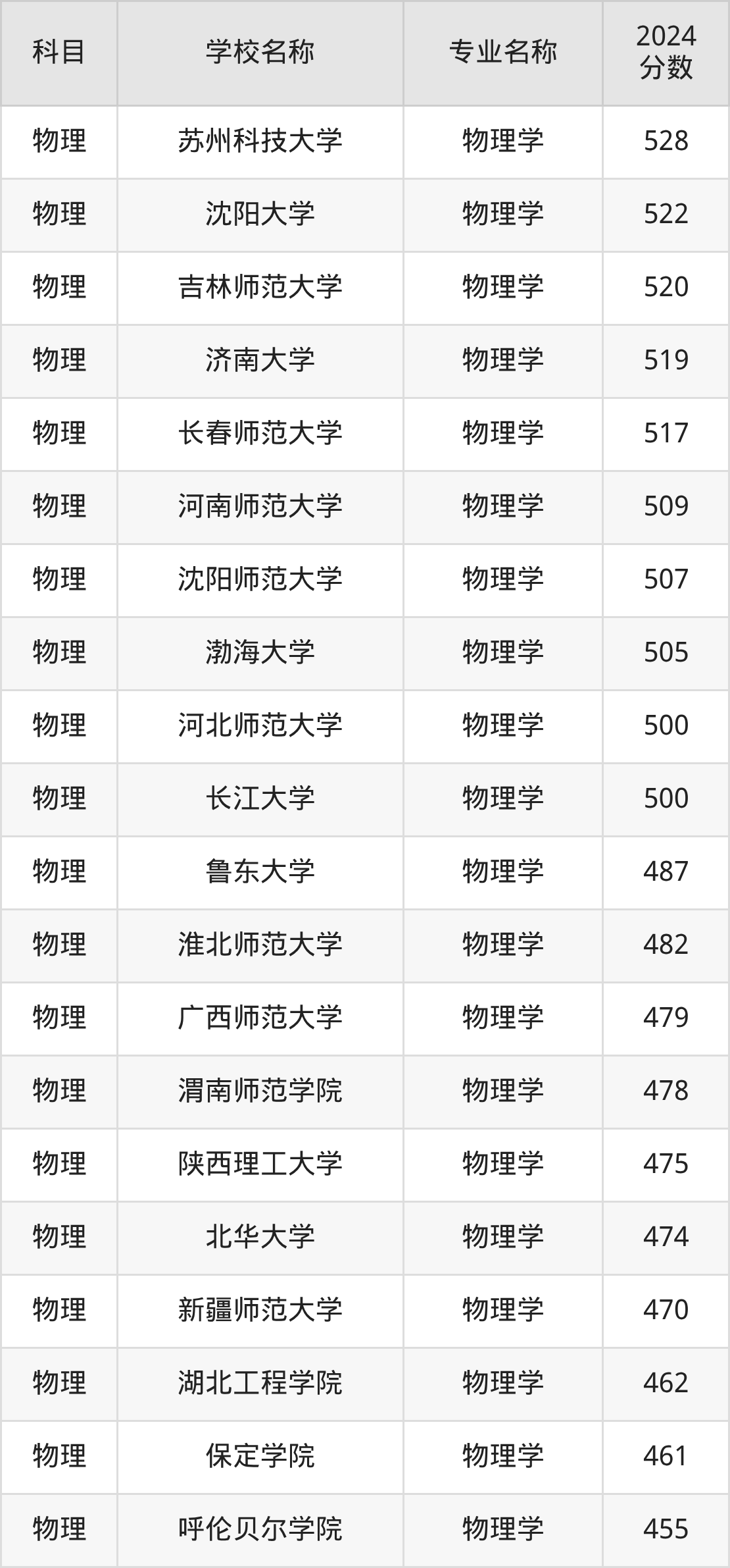 | 黑龙江大学 | 物理学(中俄学 院招生) | 498 |