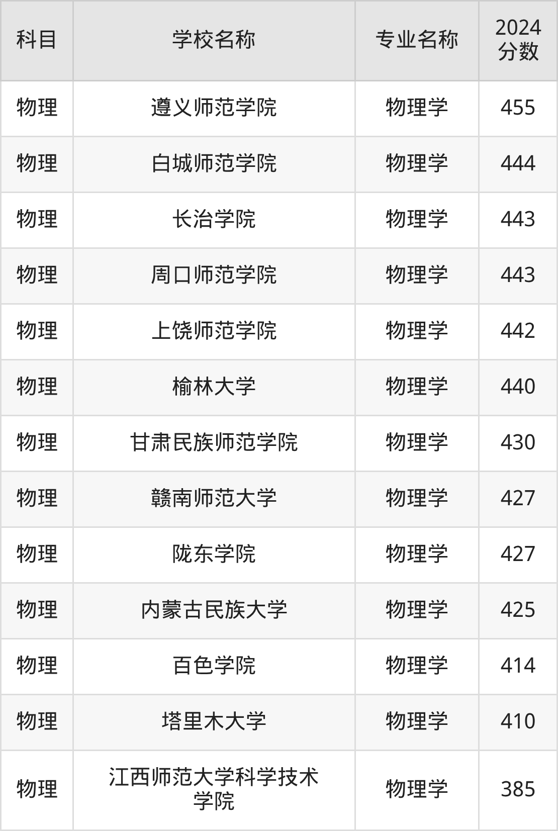 | 大庆师范学院 | 物理学(师范类) | 445 |