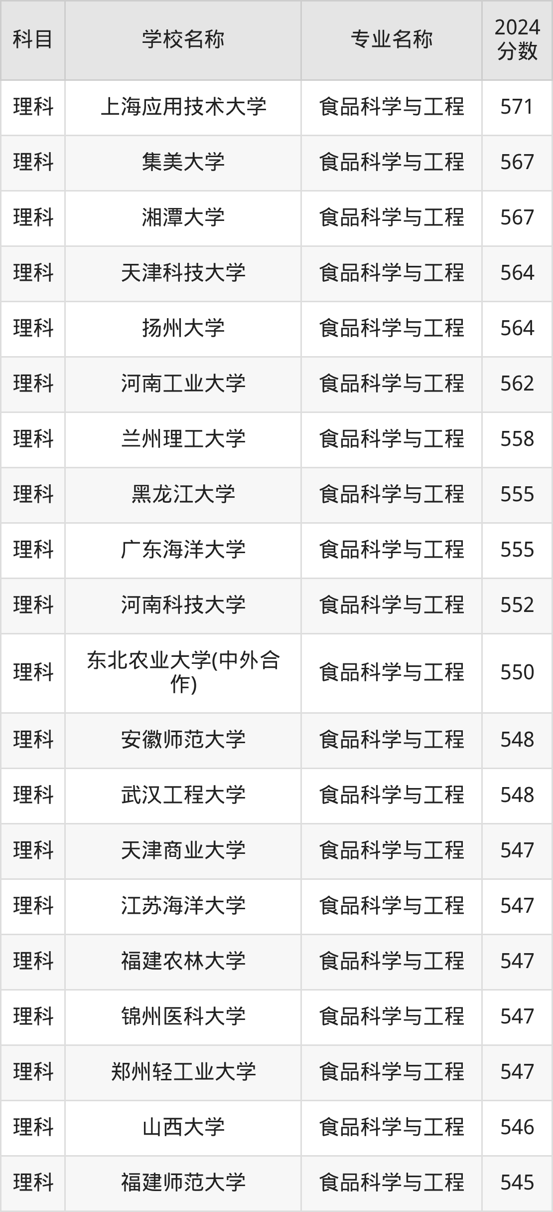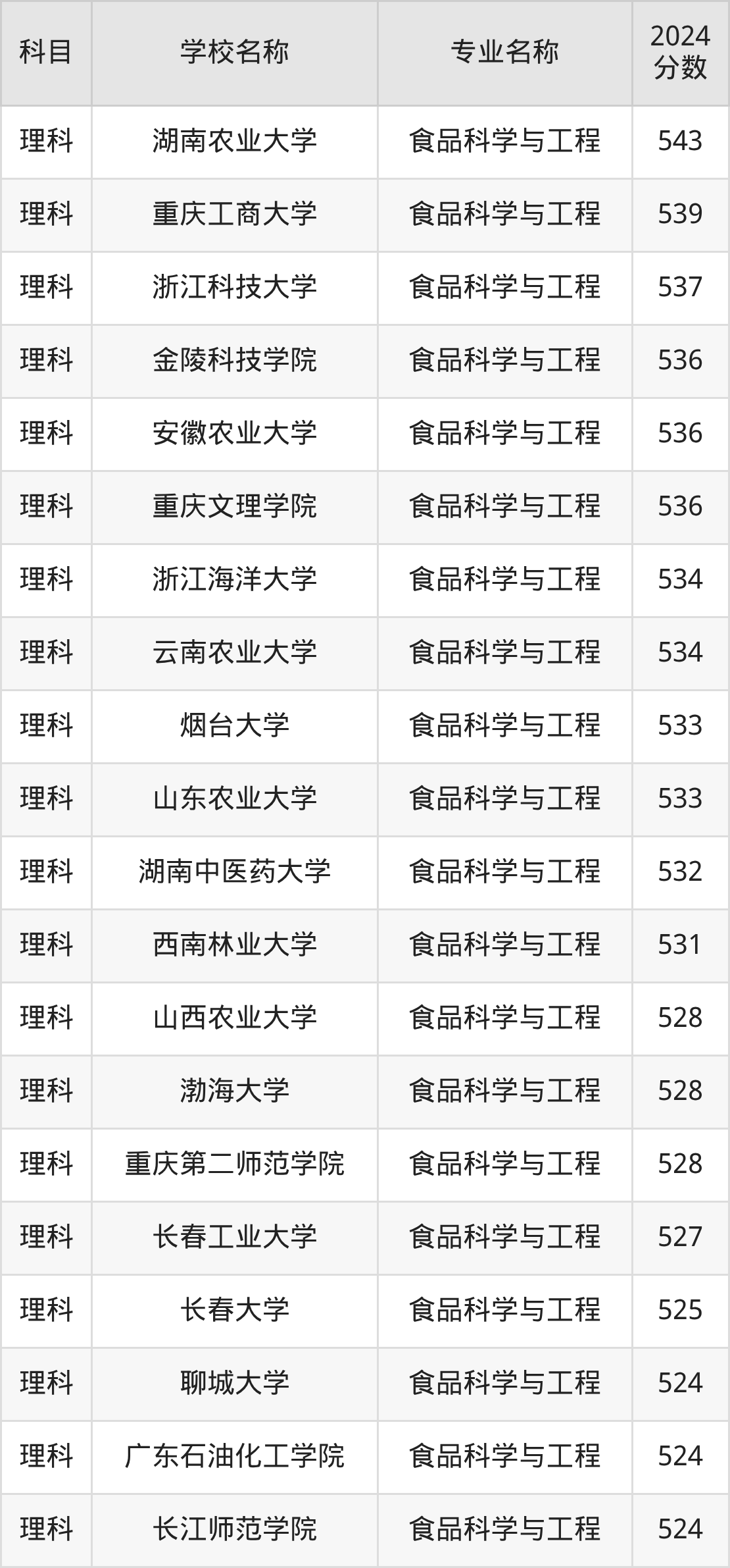 | 四川农业大学(中外合 作) | 食品科学与工程 (中外高水平大 学学生交流计划) | 543 |
