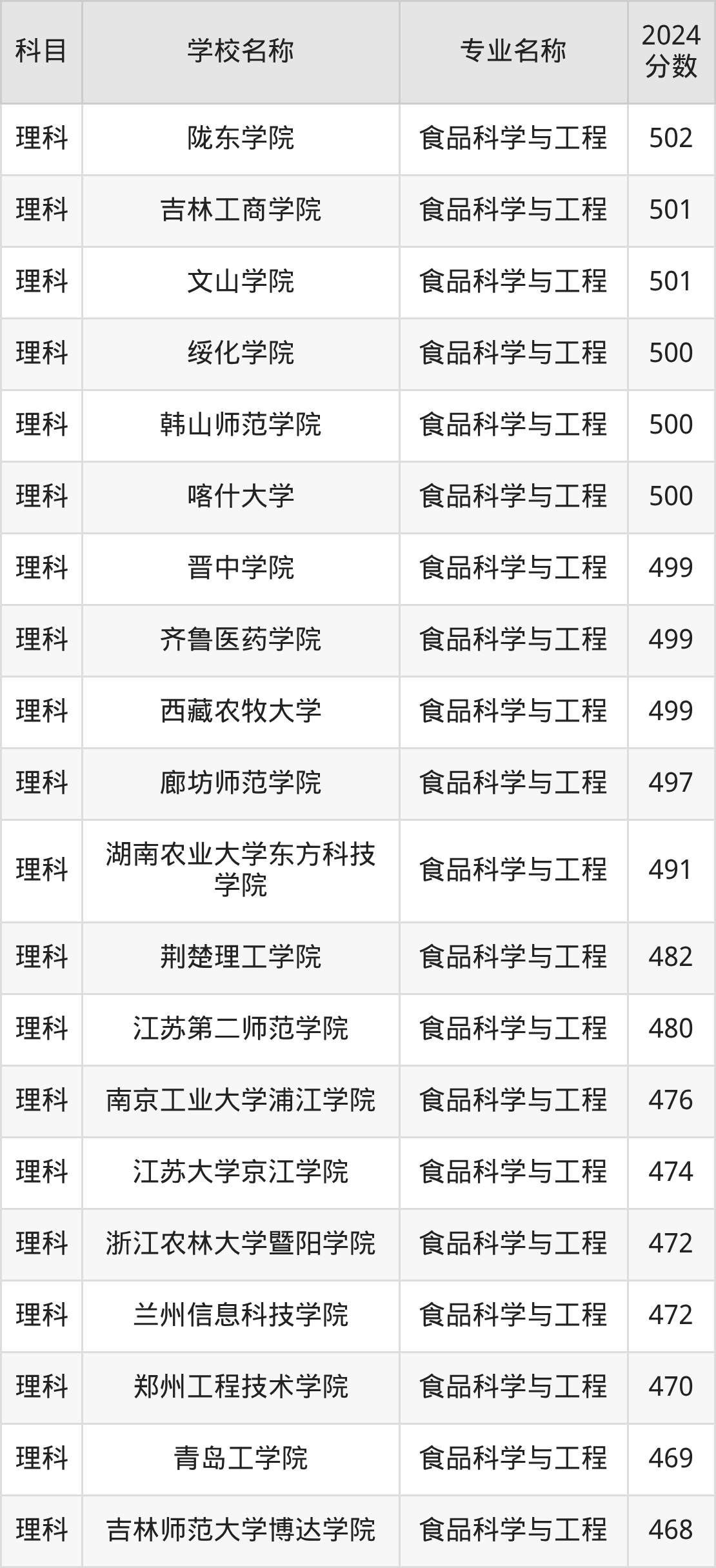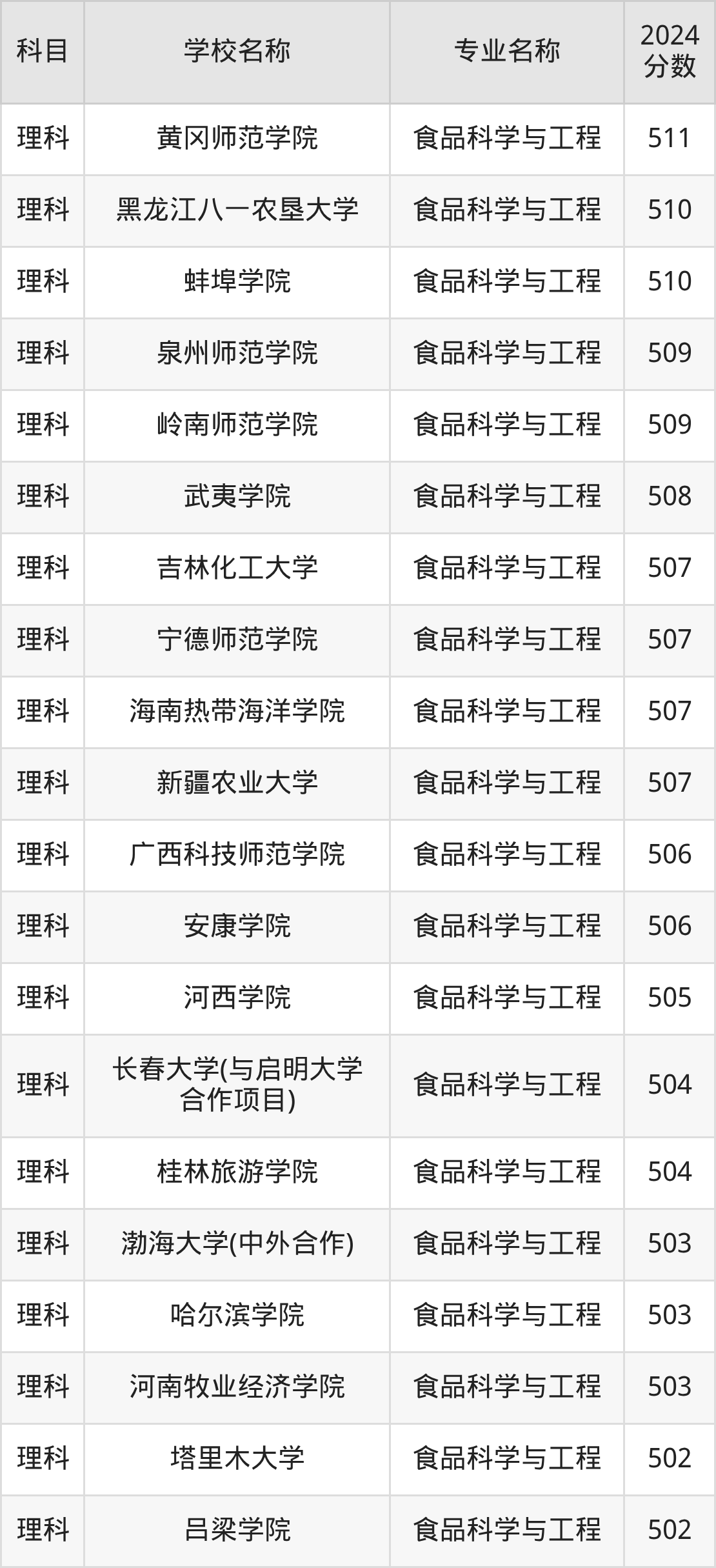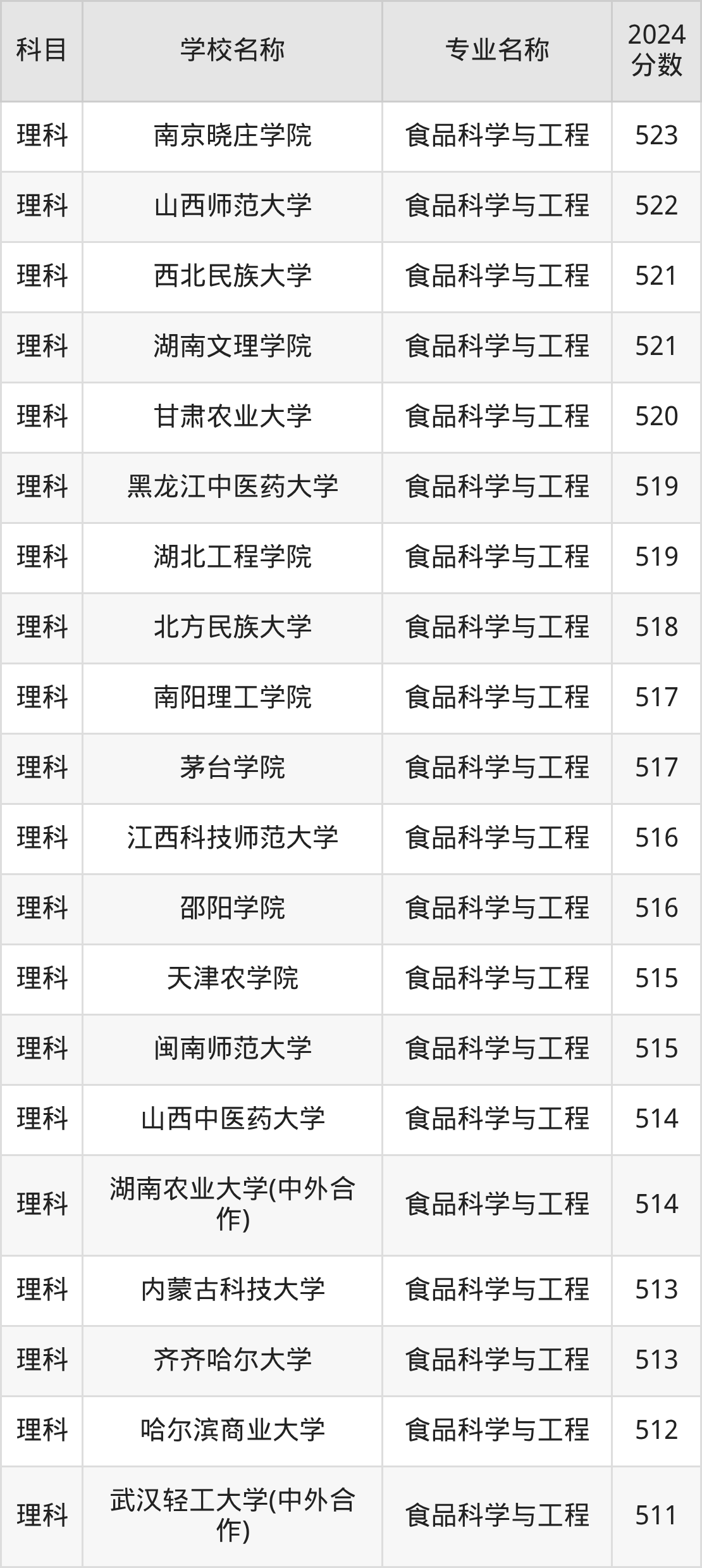 | 学校名称 | 专业名称 | 2024 分数 |