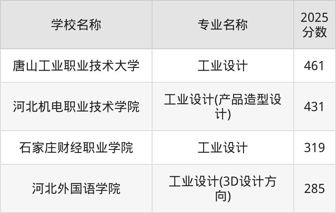 下文将为大家展示河北省大学工业设计专业2025年在河北高考的最低录取分数线!