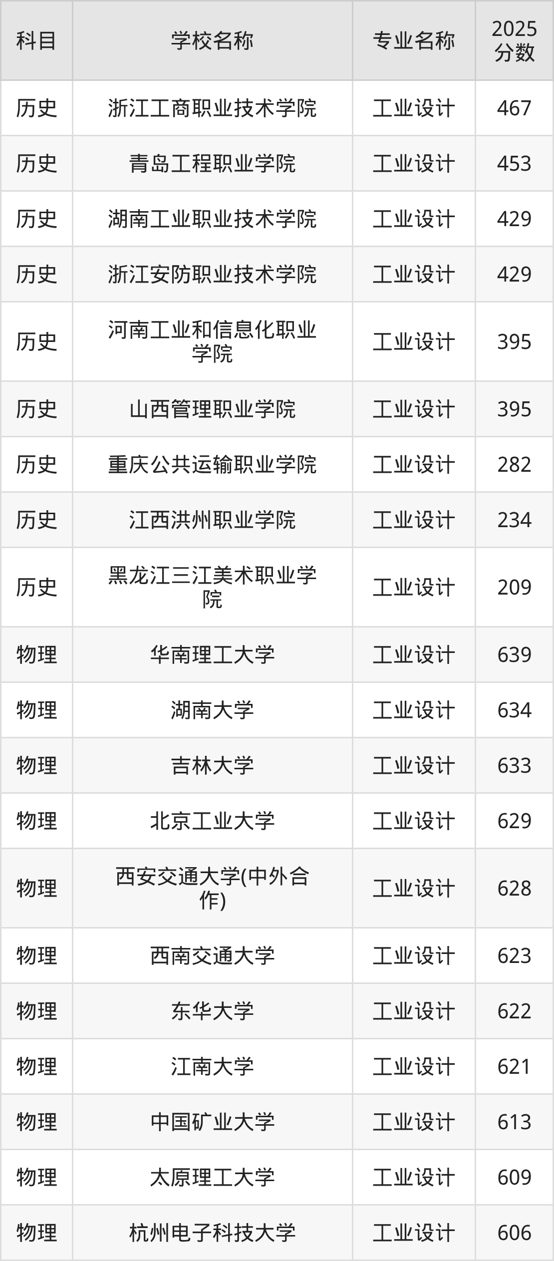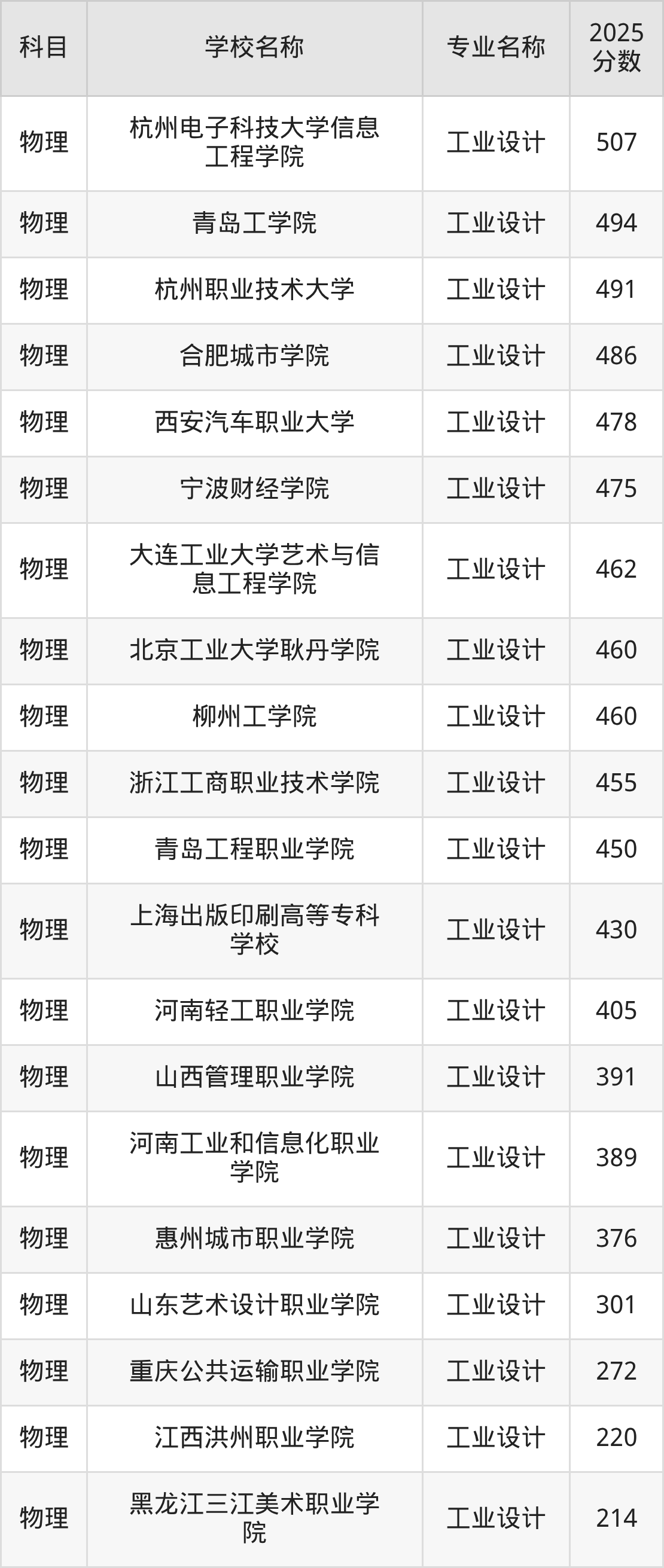通过上文大家可以知晓,在河北省内招工业设计专业的院校数量较少,所以下文将为2026届高考生继续展示:省外大学的工业设计专业2025年在河北高考的录取情况,包含浙江工商职业技术学院、青岛工程职业学院、湖南工业职业技术学院、浙江安防职业技术学院、河南工业和信息化职业学院。