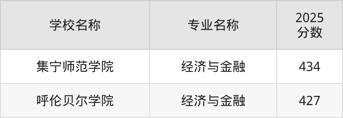 在直接以“经济与金融”的名称招生的内蒙古自治区大学中,集宁师范学院的分数线最高、排名第一名,在历史组的最低分是486分,全自治区排名前11557位的高考生才有较大机会被录取。