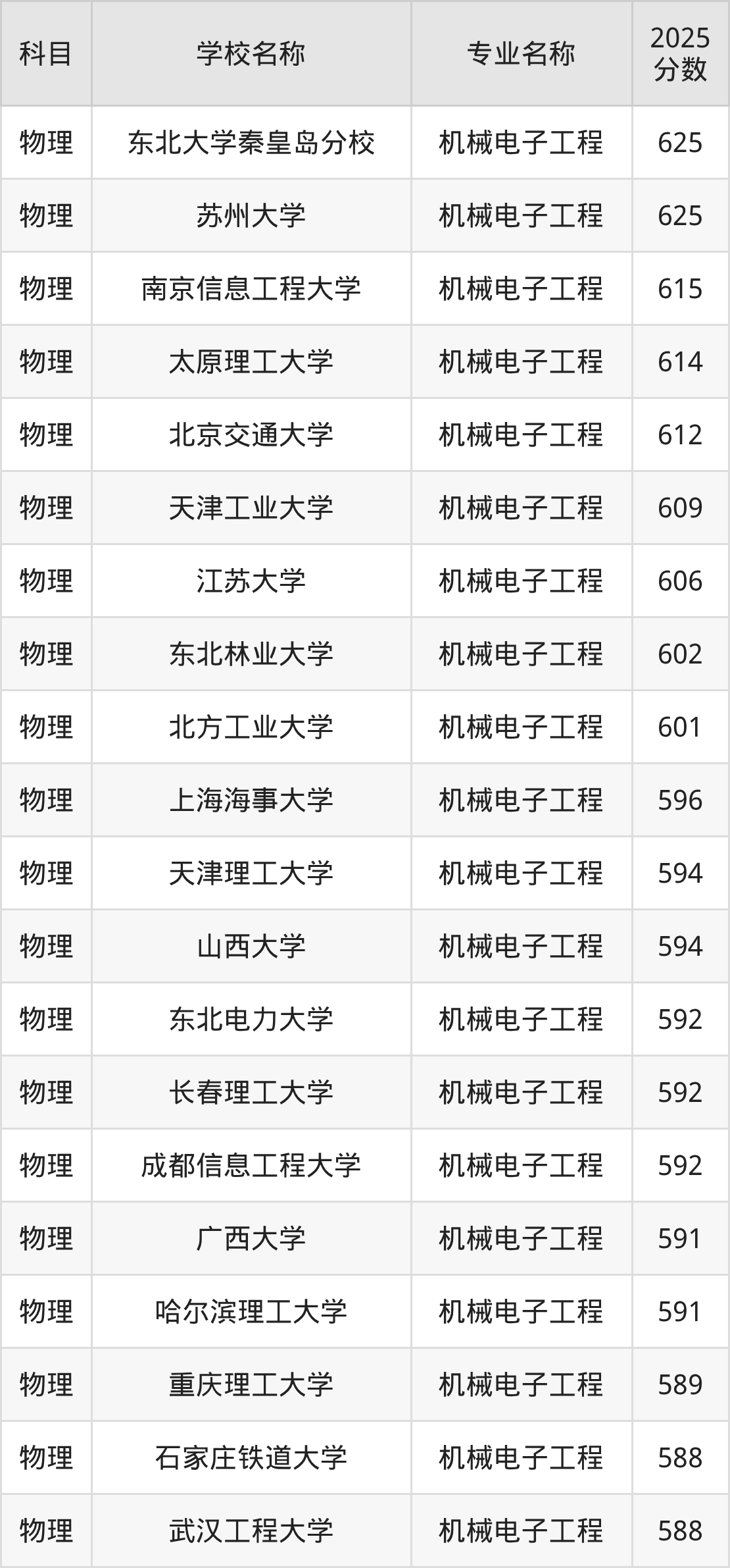 通过上文大家可以知晓,在辽宁省内招机械电子工程专业的院校数量较少,所以下文将为2026届高考生继续展示:省外大学的机械电子工程专业2025年在辽宁高考的录取情况,包含东北大学秦皇岛分校、苏州大学、南京信息工程大学、太原理工大学、北京交通大学。