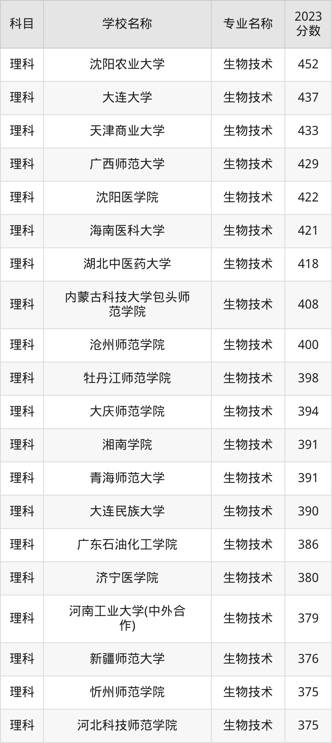 | 白城师范学院 | 生物技术 | 369 |
