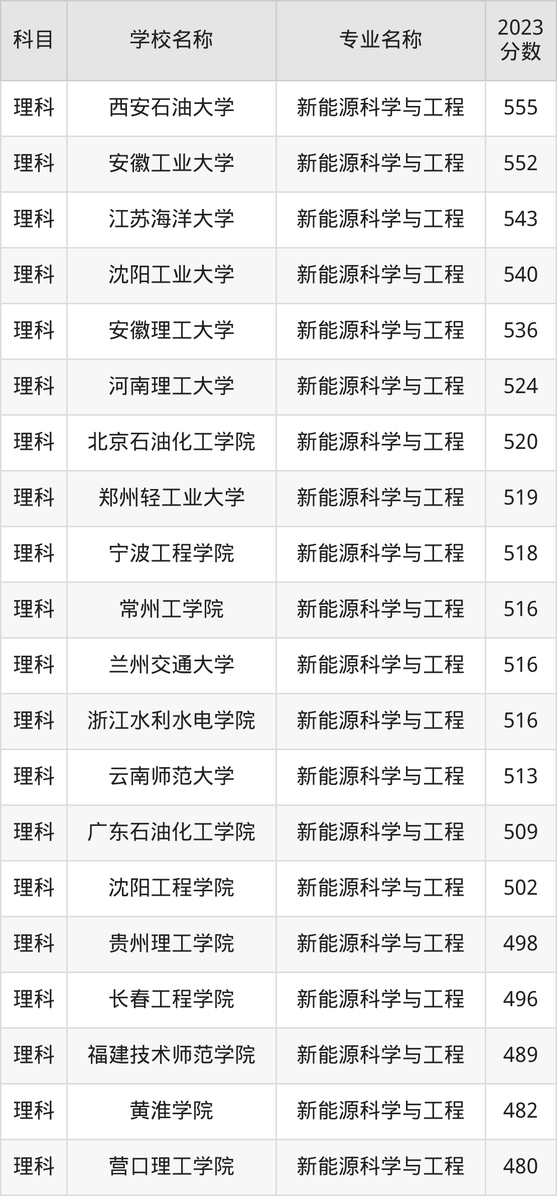 | 新余学院 | 新能源科学与工程 | 479 |