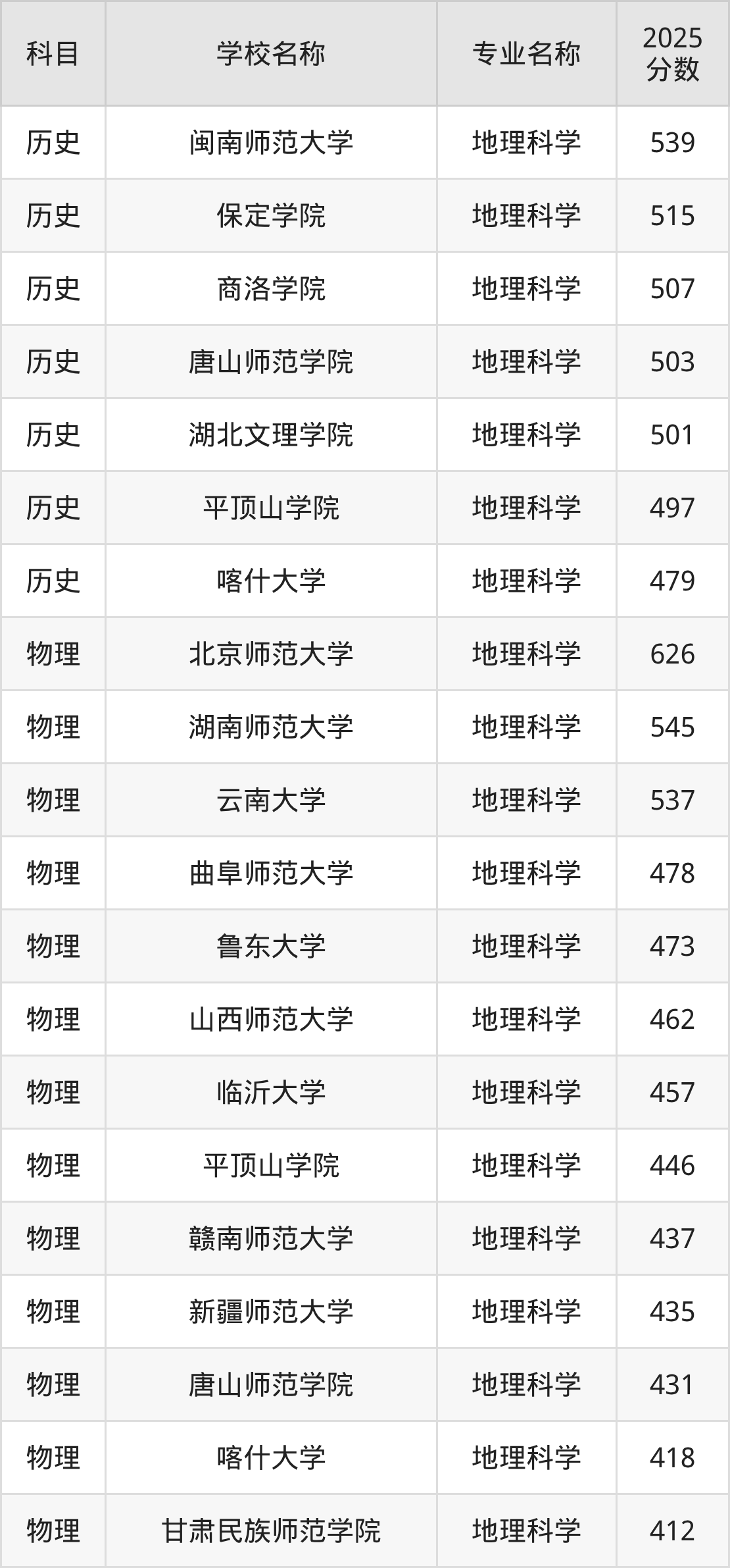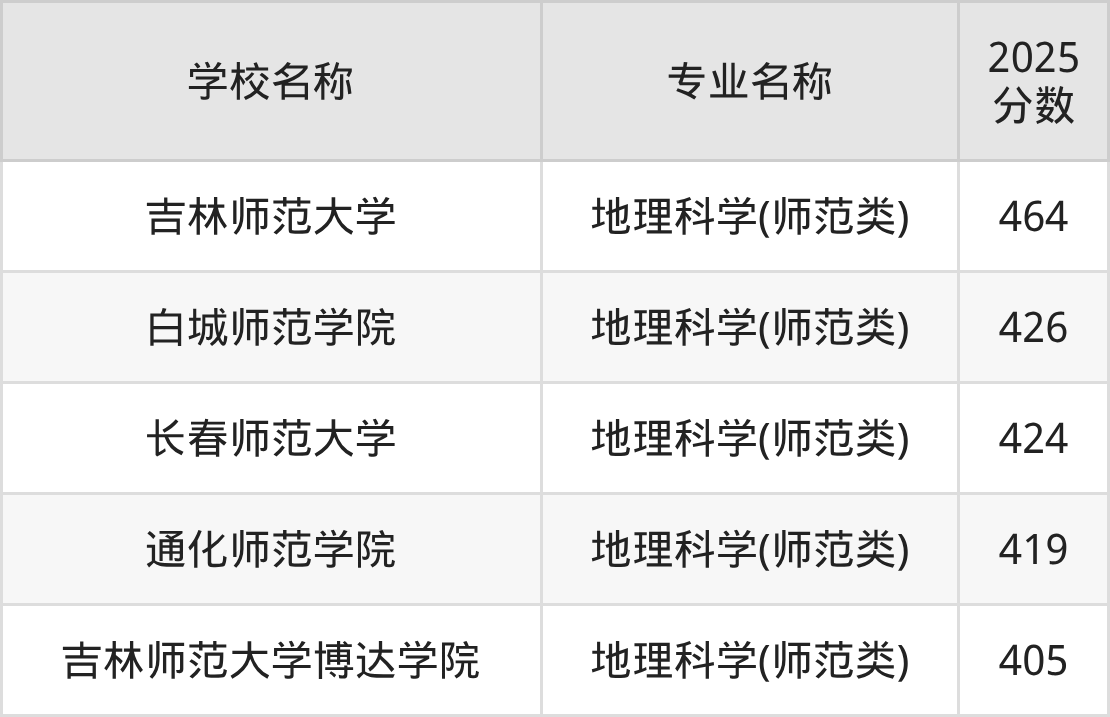 下文将为大家展示吉林省大学地理科学专业2025年在吉林高考的最低录取分数线!