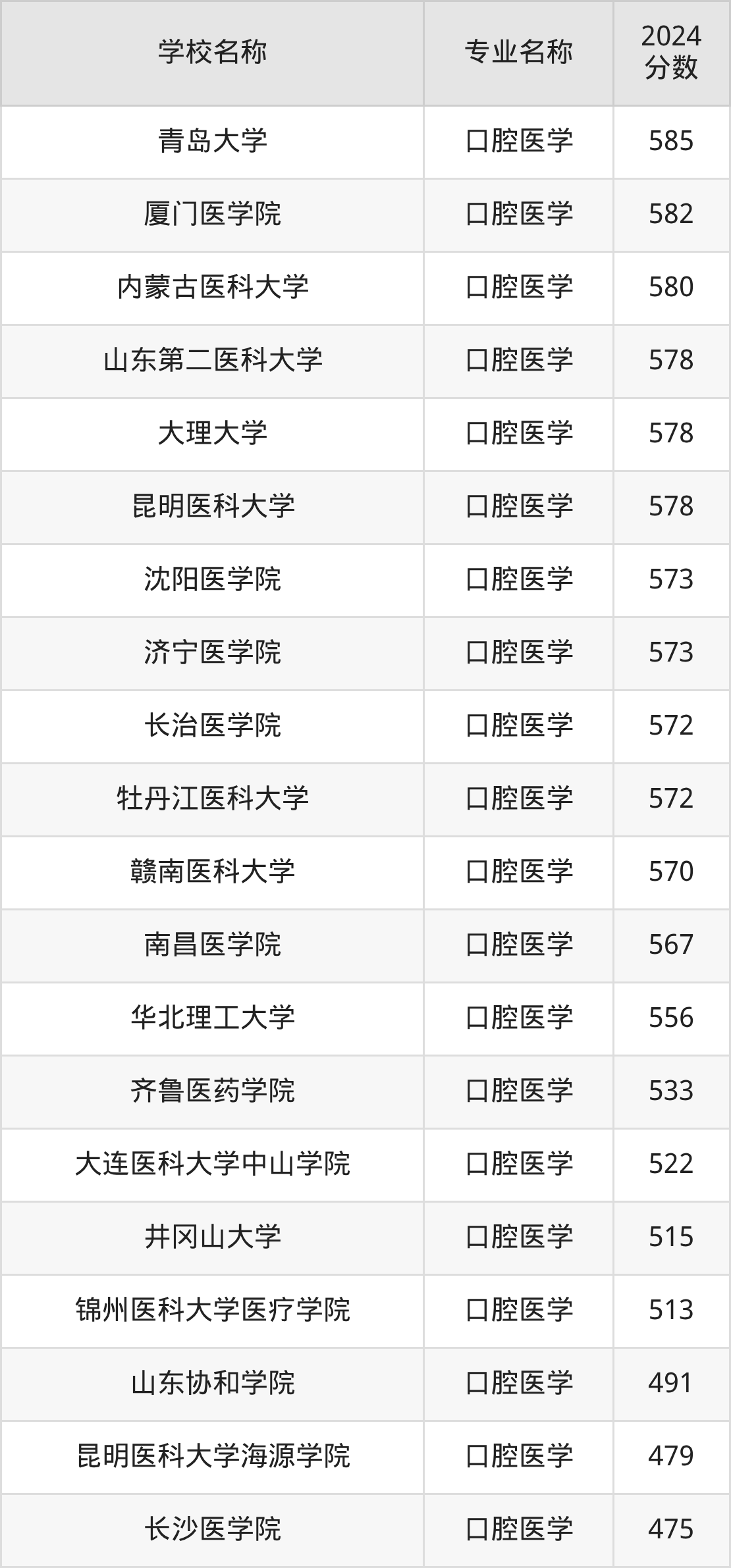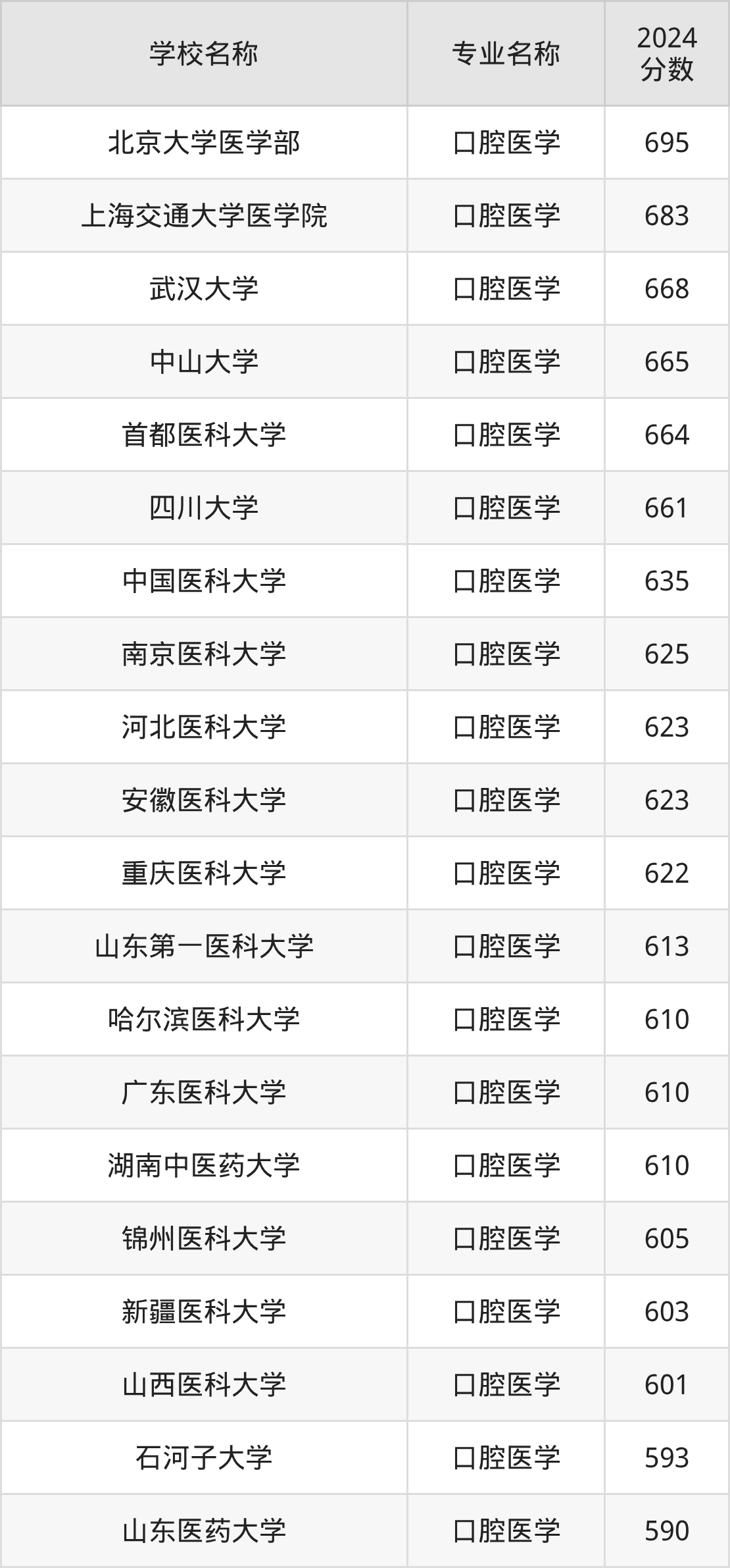| 南开大学 | 口腔医学 | 655 |