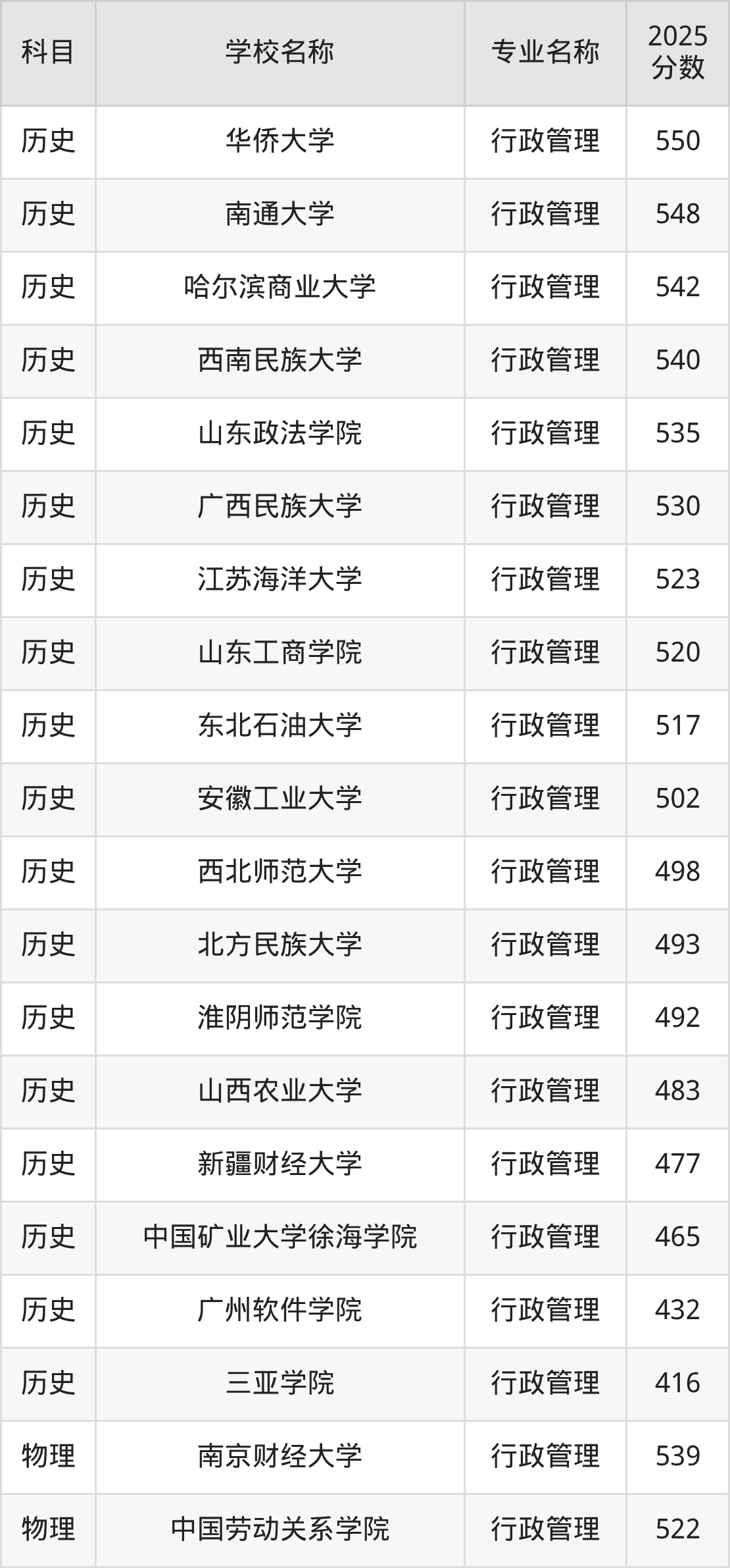 圆梦小编根据吉林2025年高考历史组专业分,将开设了行政管理专业且位于吉林省内的大学按照“录取分”从高到低排序,得出了以上榜单。