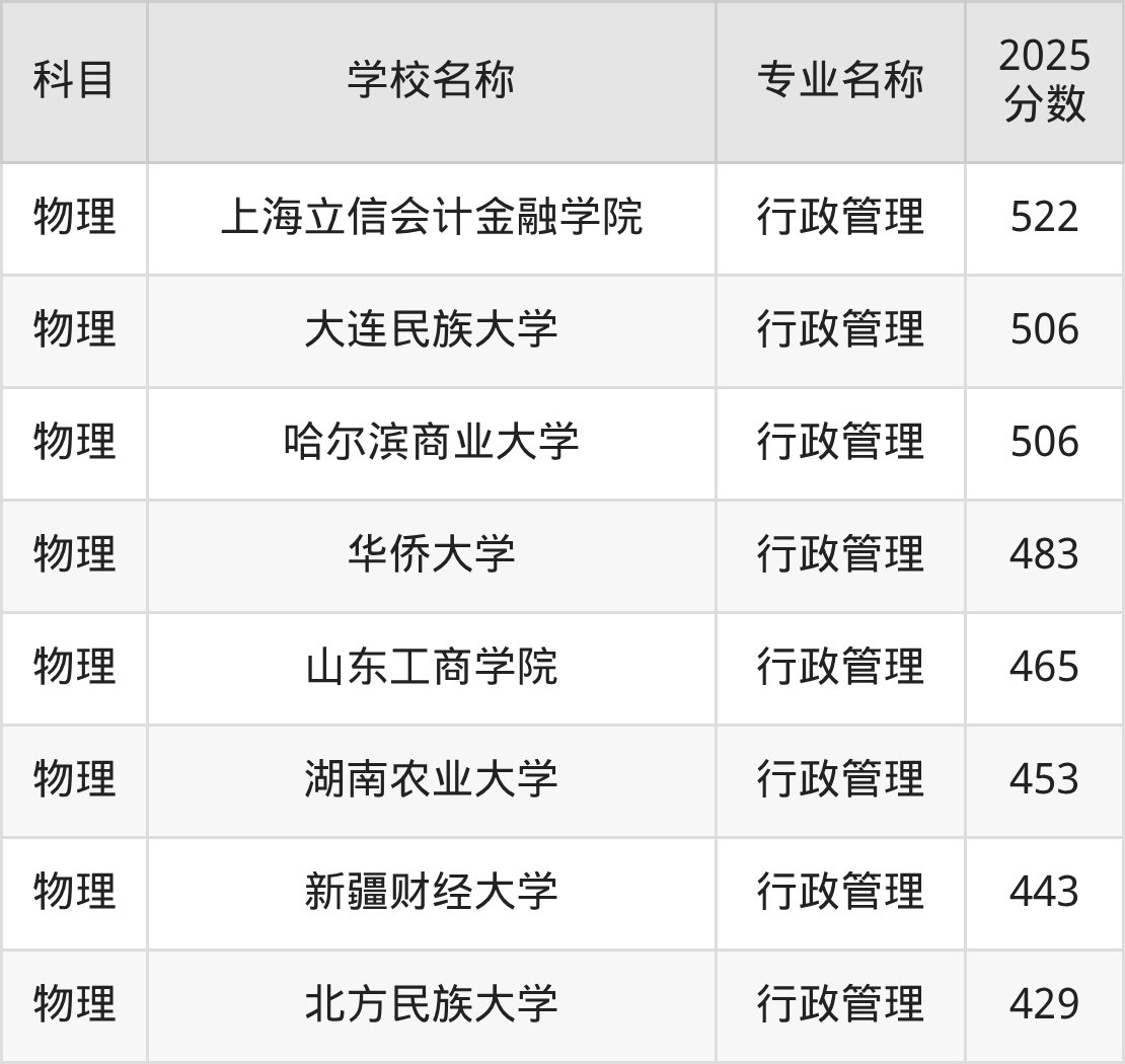 下文将为大家展示吉林省大学行政管理专业2025年在吉林高考的最低录取分数线!