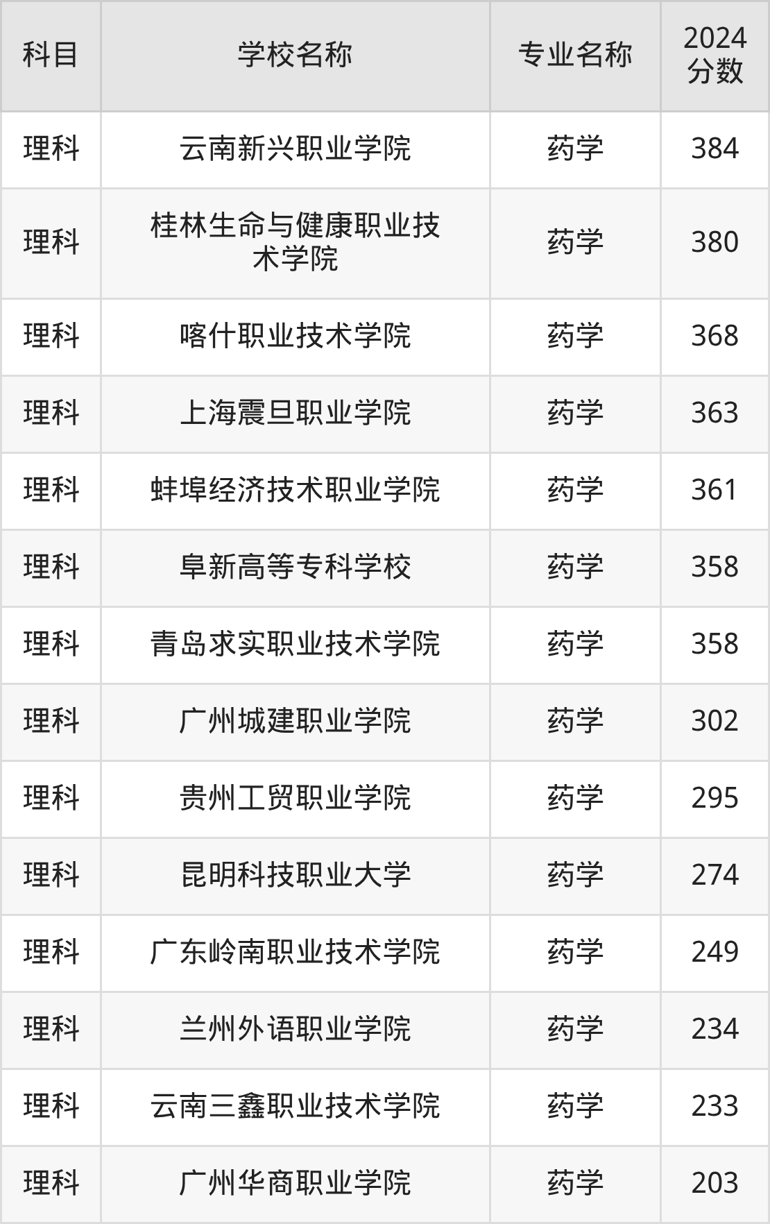 | 泸州医疗器械职业学院 | 药学 | 242 |