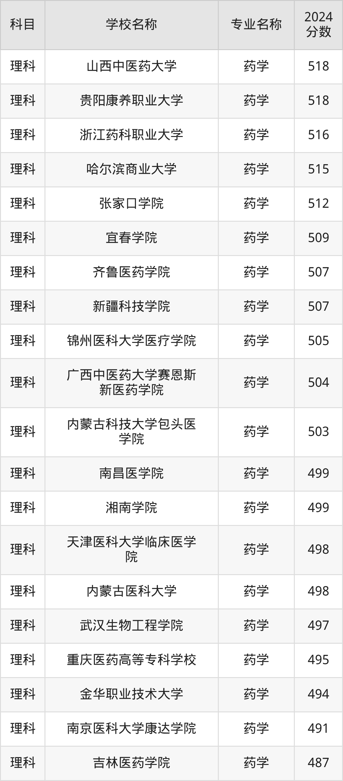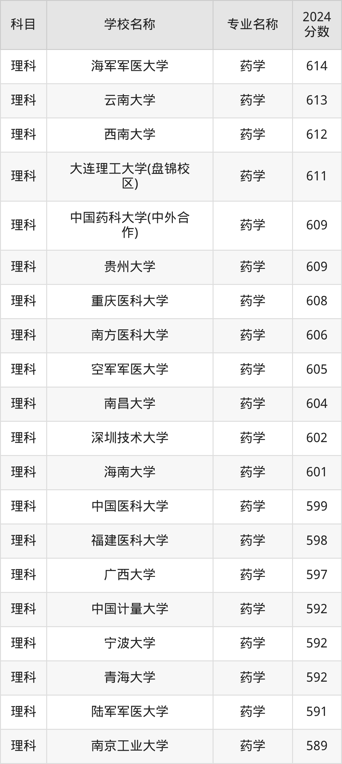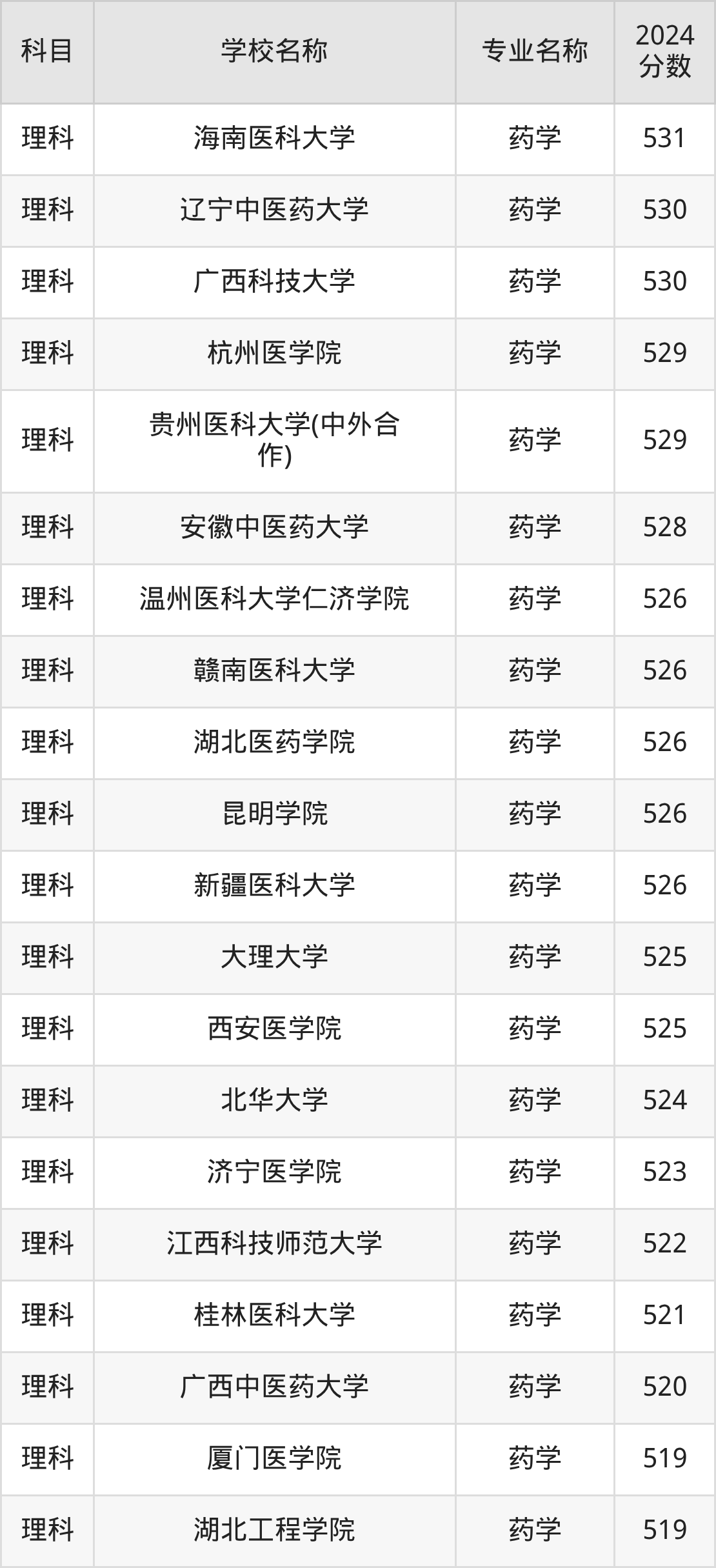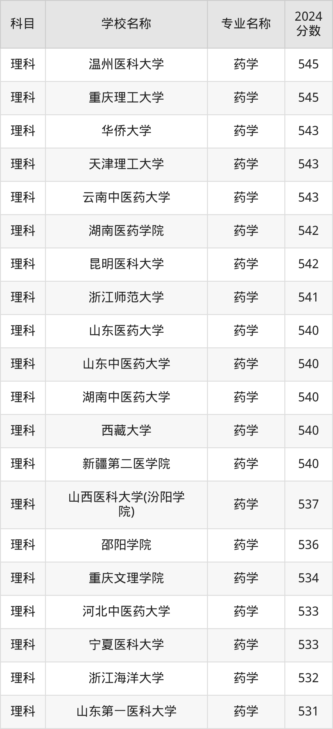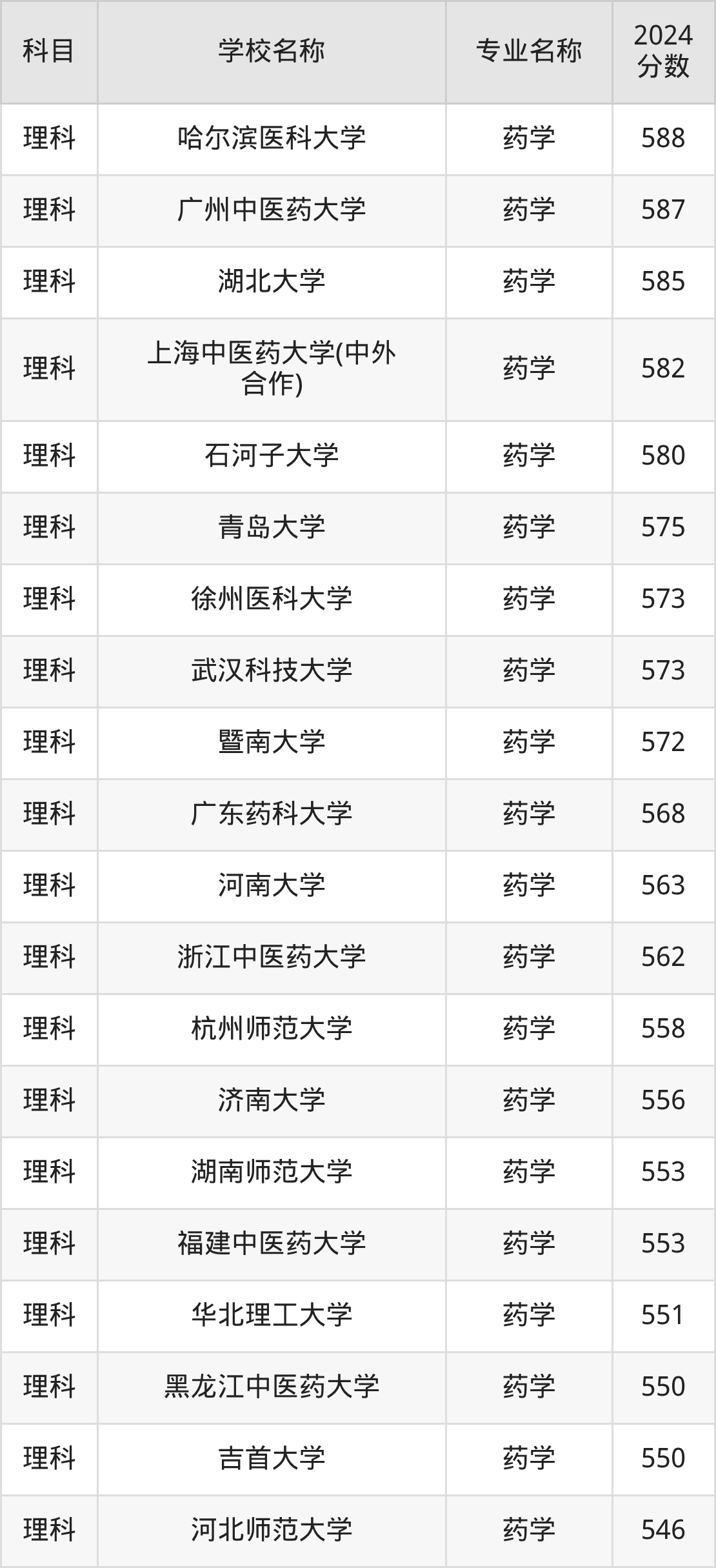 下文将为大家展示四川省大学药学专业2024年在四川高考的最低录取分数线!