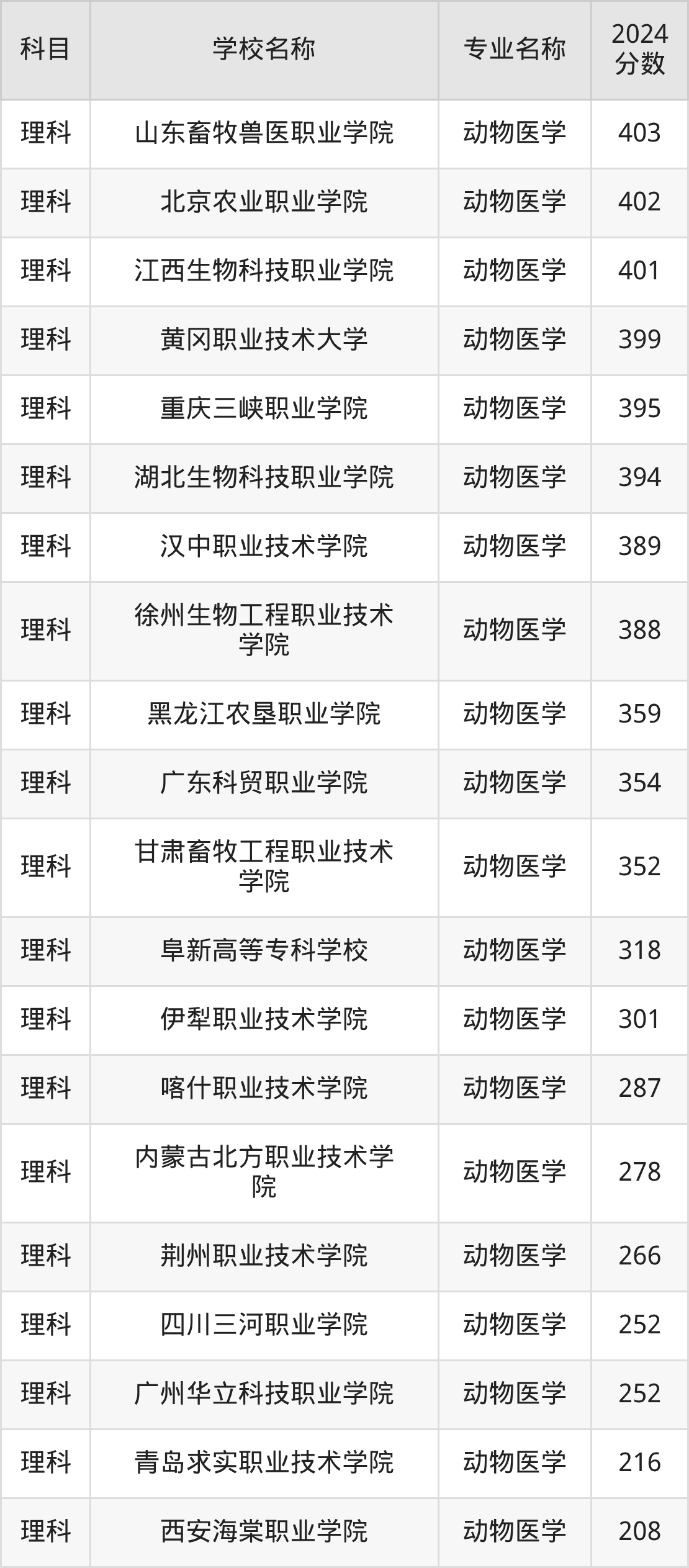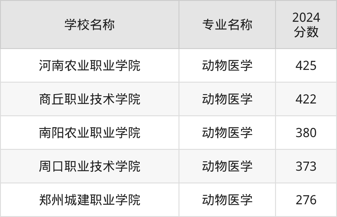 | 郑州城建职业学院 | 动物医学 | 295 |
