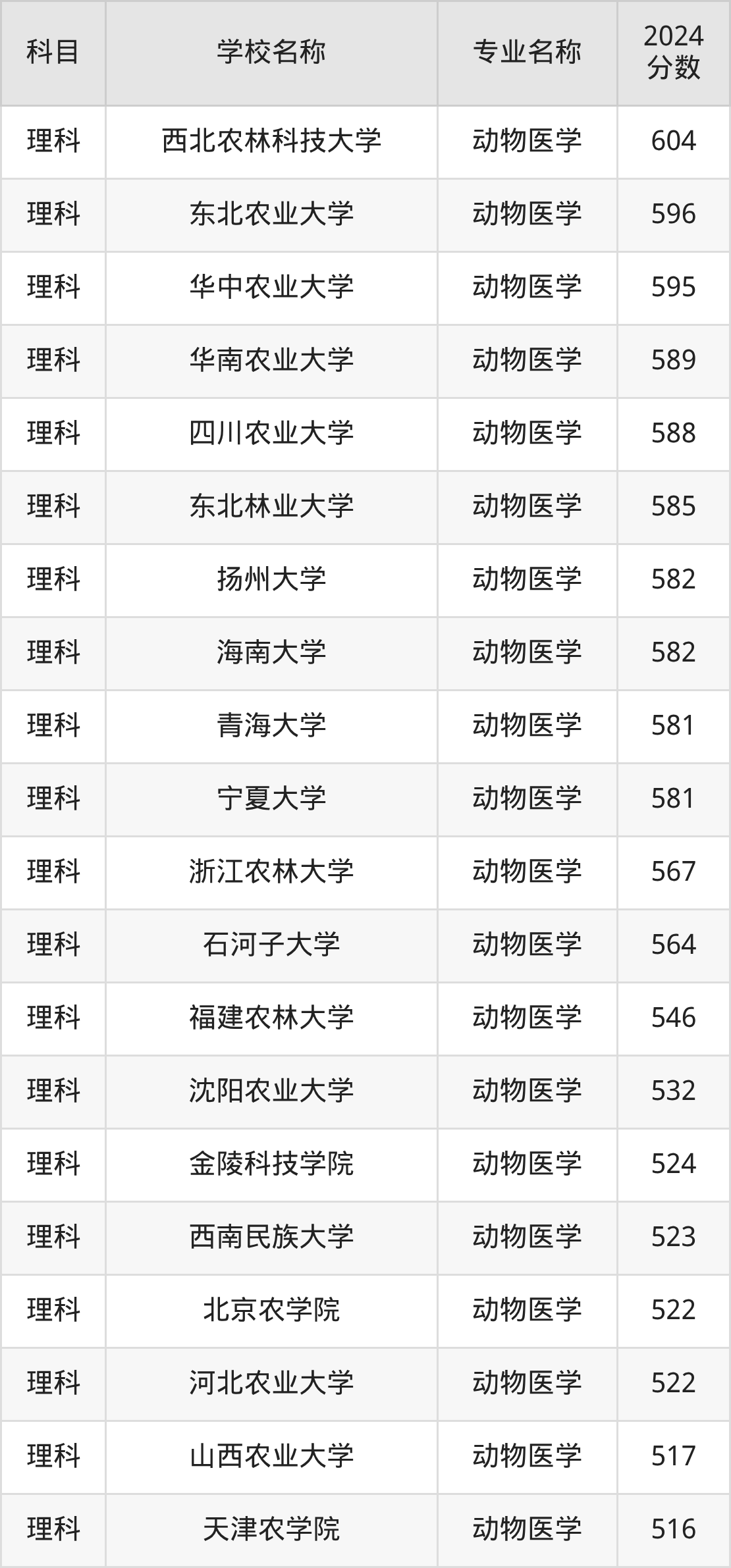 | 河南科技大学(农林类 ) | 动物医学 | 523 |