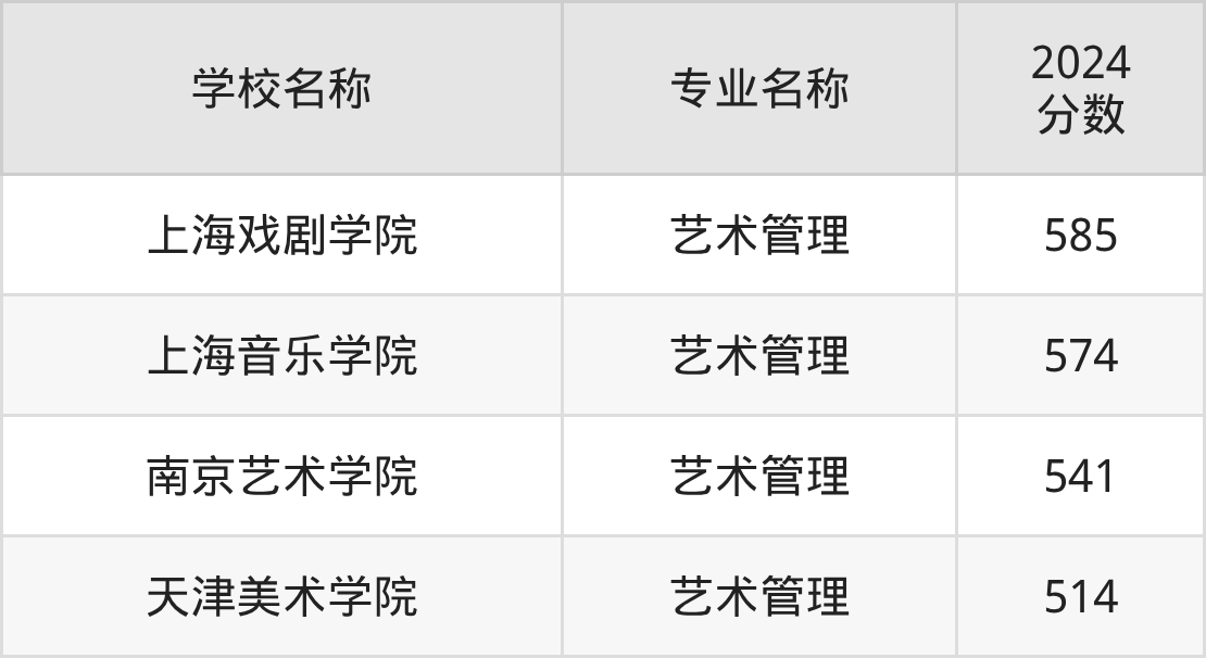 通过上文大家可以知晓,在北京市内招艺术管理专业的院校数量较少,所以下文将为2026届高考生继续展示:市外大学的艺术管理专业2024年在北京高考的录取情况,包含上海戏剧学院、上海音乐学院、南京艺术学院、天津美术学院。