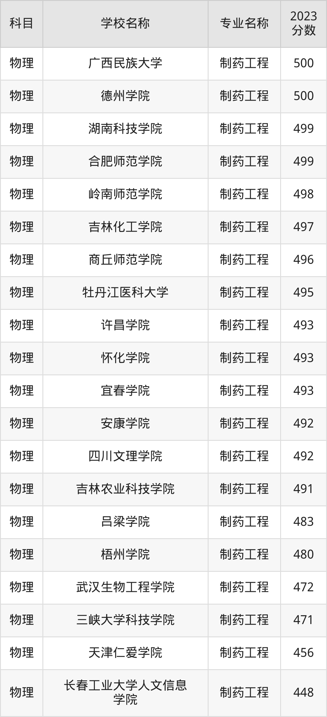 下文将为大家展示河北省大学制药工程专业2023年在河北高考的最低录取分数线!