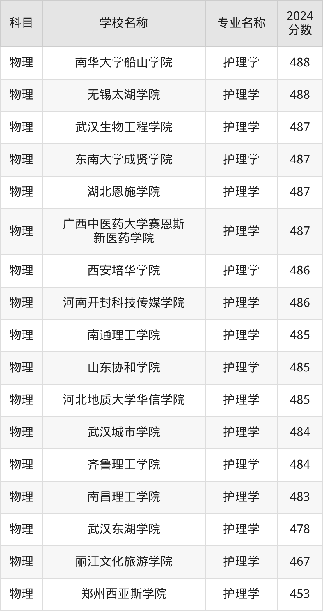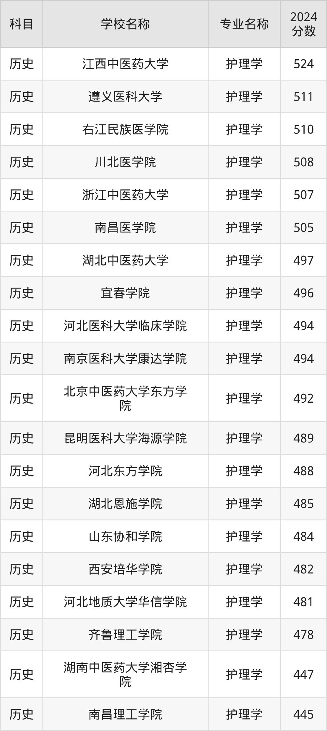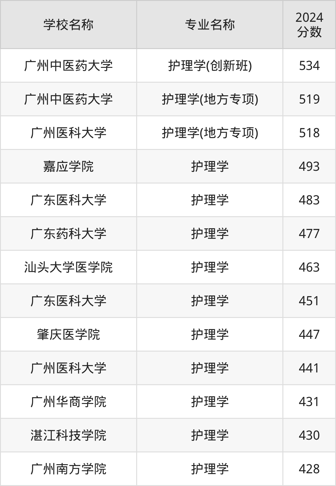 | 广州南方学院 | 护理学 | 475 |