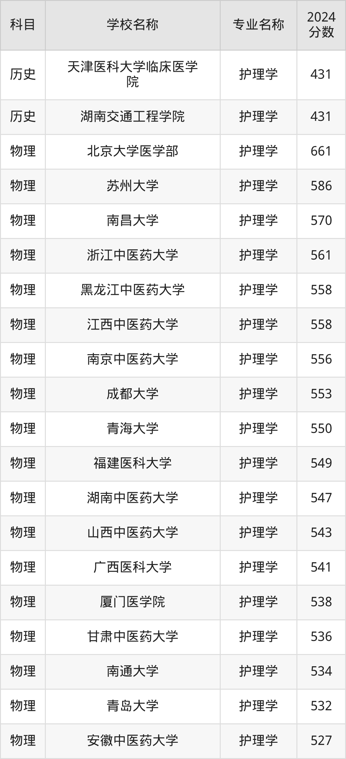 | 暨南大学 | 护理学 | 592 |