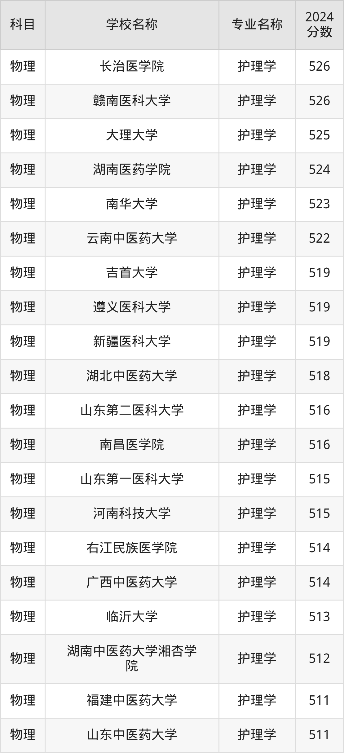 | 广东医科大学 | 护理学(办学地 点:湛江校区) | 512 |
