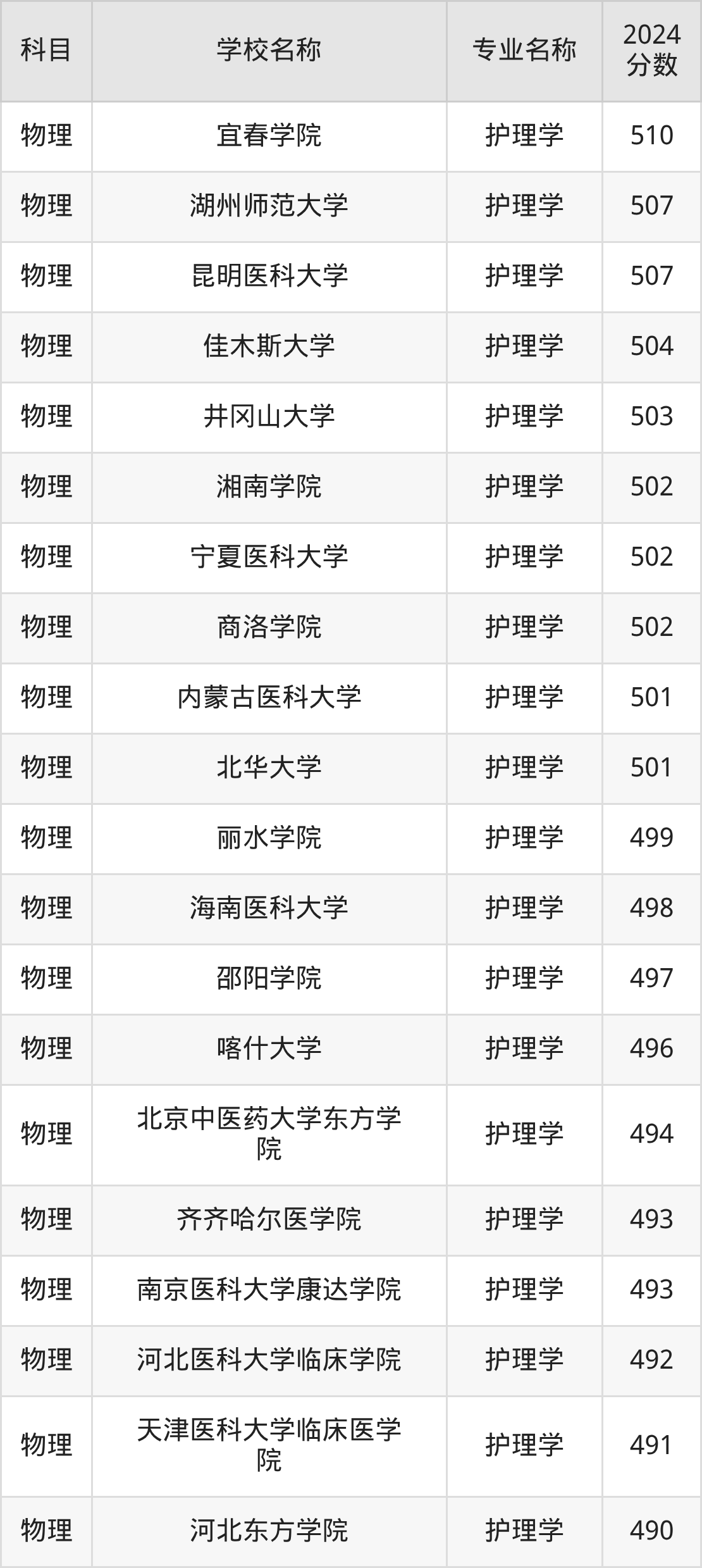 | 嘉应学院 | 护理学 | 496 |