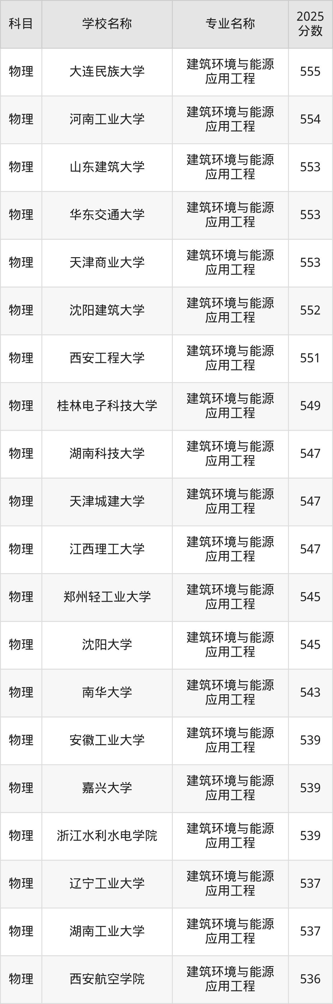 | 石家庄铁道大学 | 建筑环境与能源 应用工程 | 555 |
