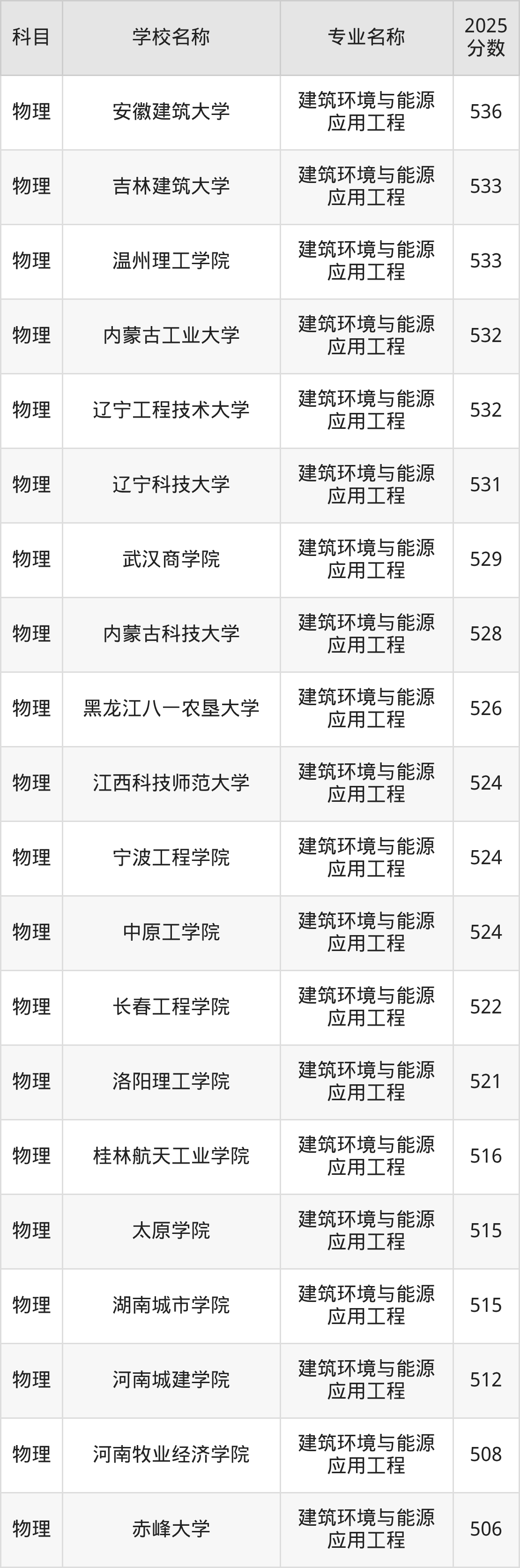 下文将为大家展示河北省大学建筑环境与能源应用工程专业2025年在河北高考的最低录取分数线!