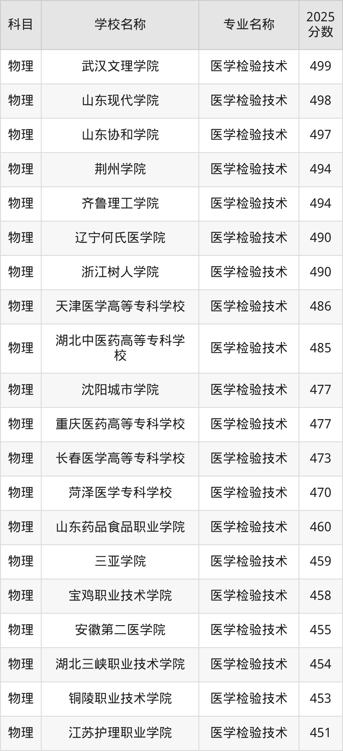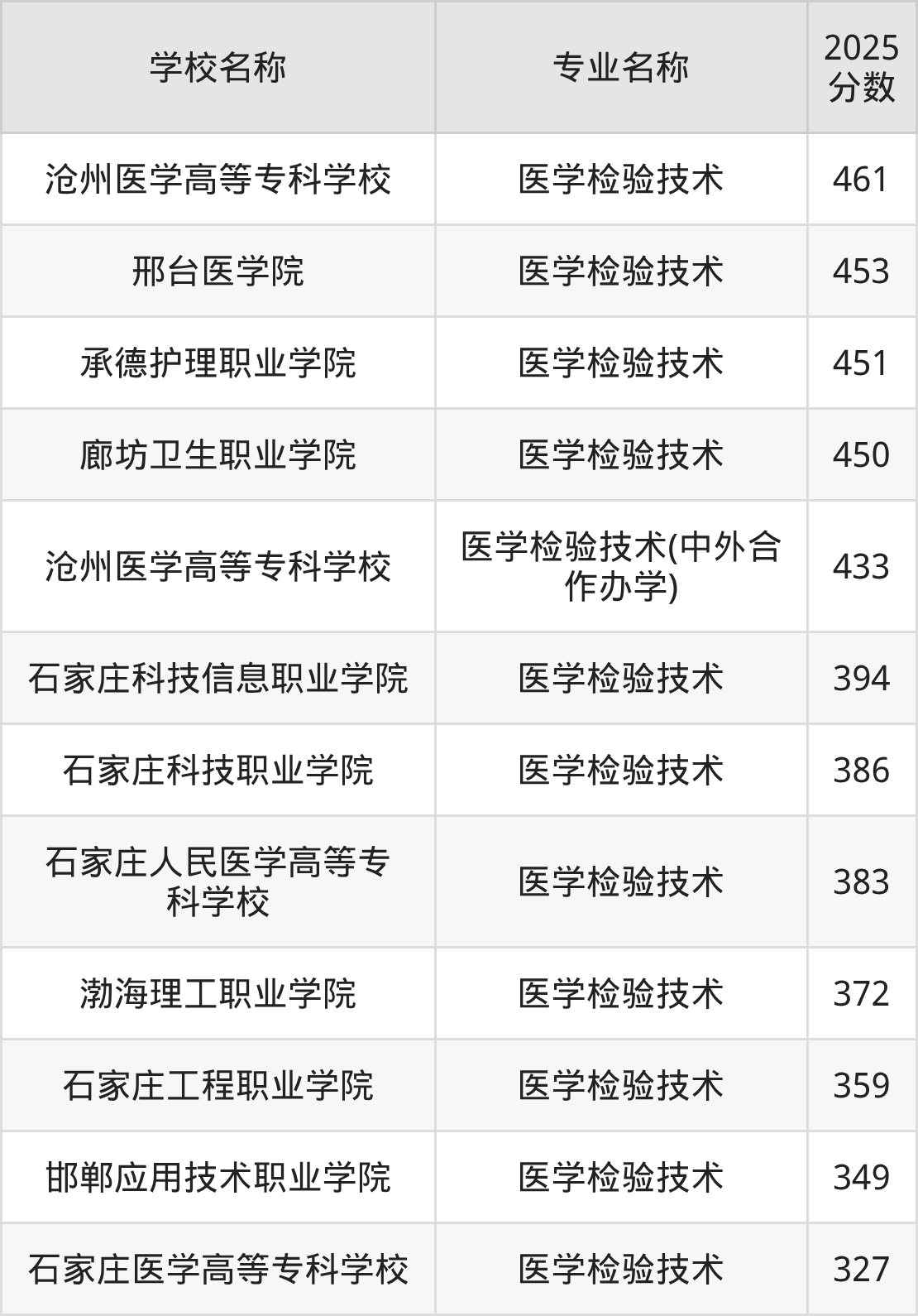 | 沧州医学高等专科学校 | 医学检验技术 | 446 |