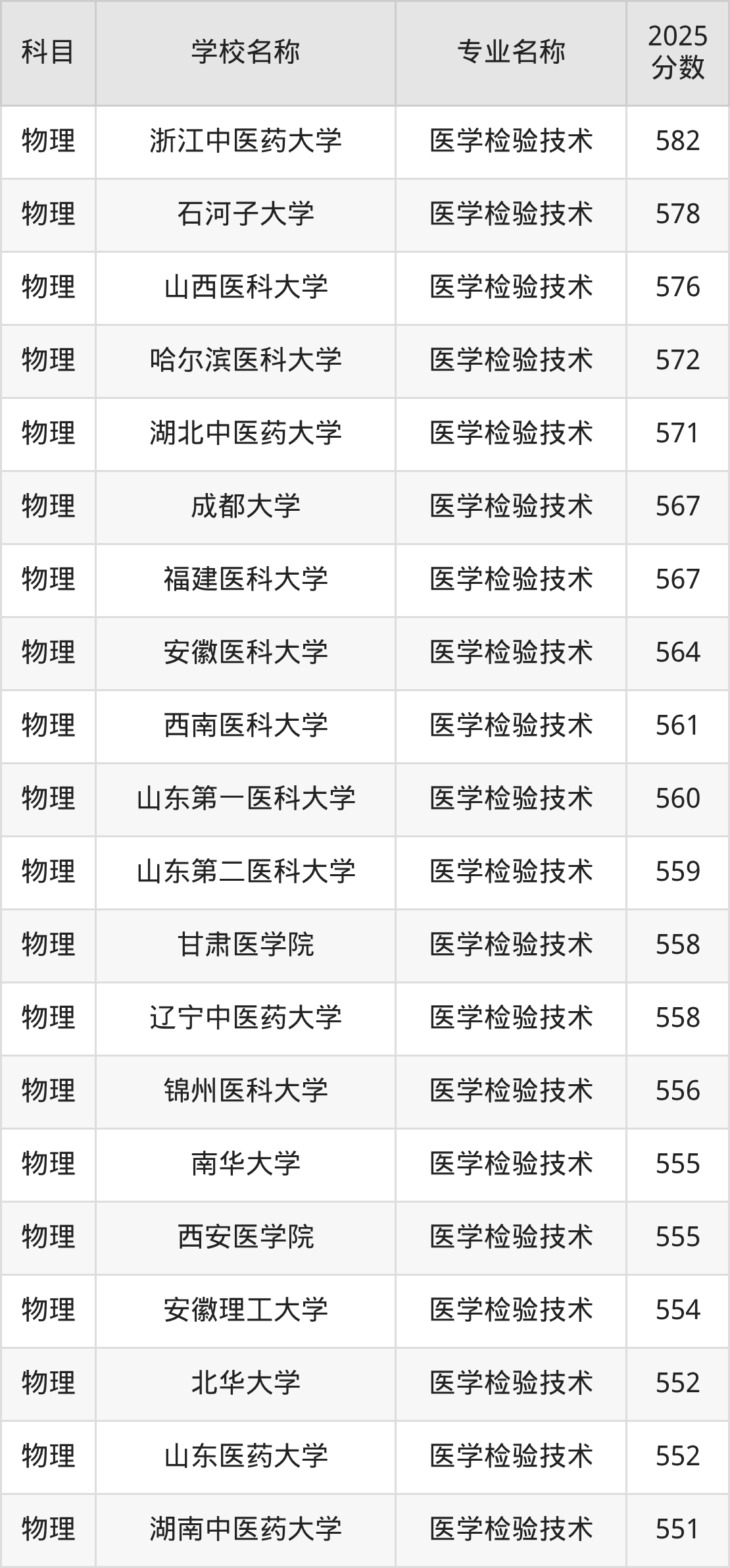 河北高考物理组:医学检验技术专业的最低分是212分~580分