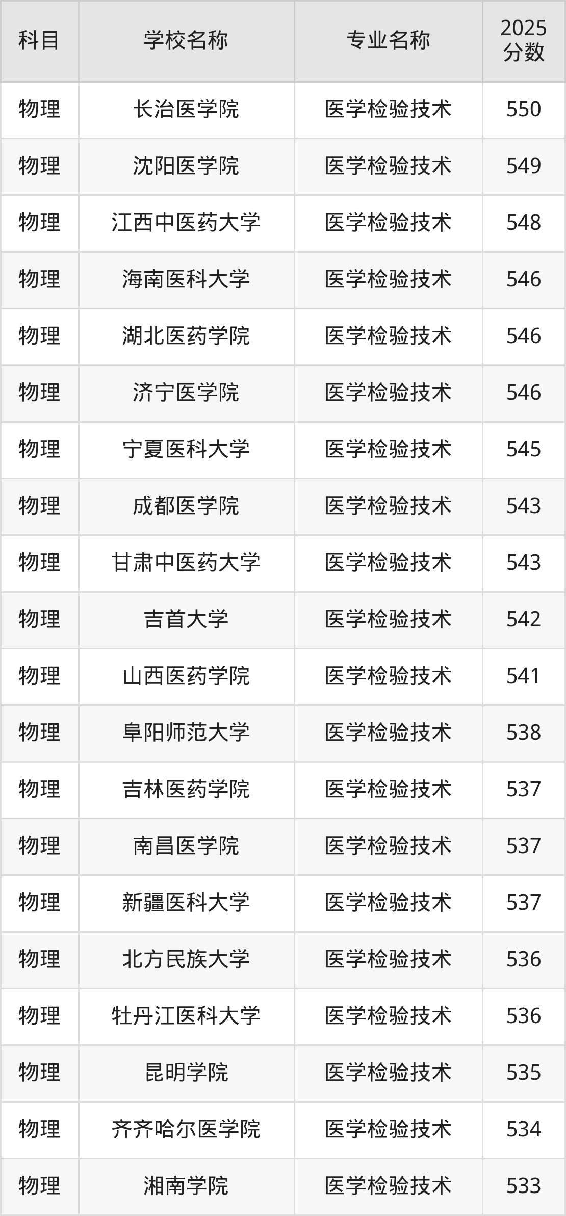 | 承德医学院 | 医学检验技术 | 546 |