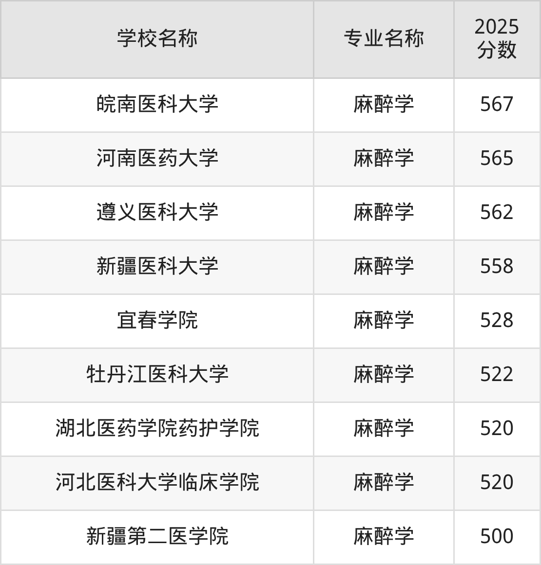 圆梦小编根据浙江2025年高考专业分,将开设了麻醉学专业且位于浙江省内的大学按照“录取分”从高到低排序,得出了以上榜单。