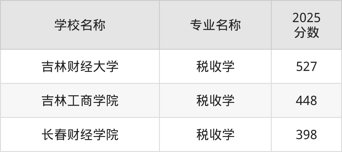 根据软科2025年专业榜单可知,开设税收学专业且位于吉林省内的大学排名如下。