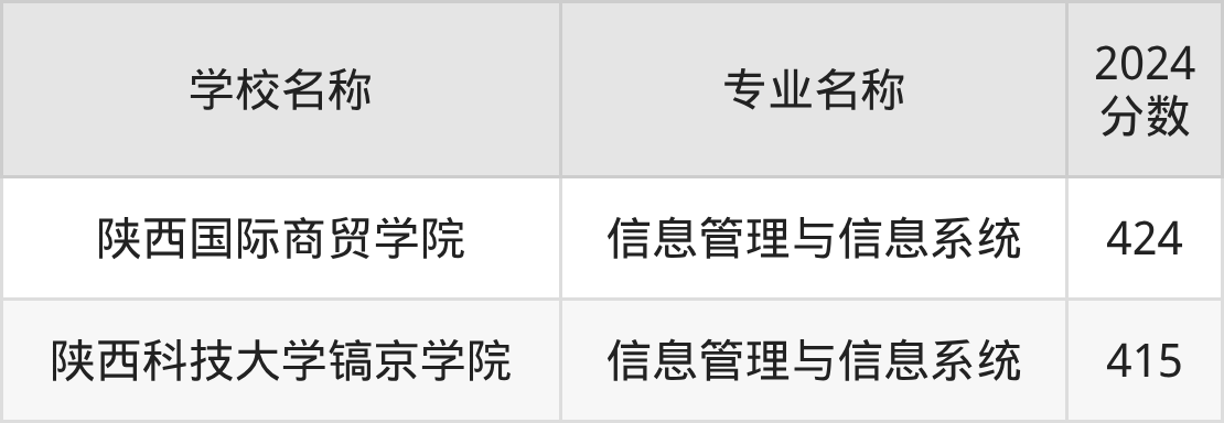 | 陕西国际商贸学院 | 信息管理与信息 系统 | 402 |