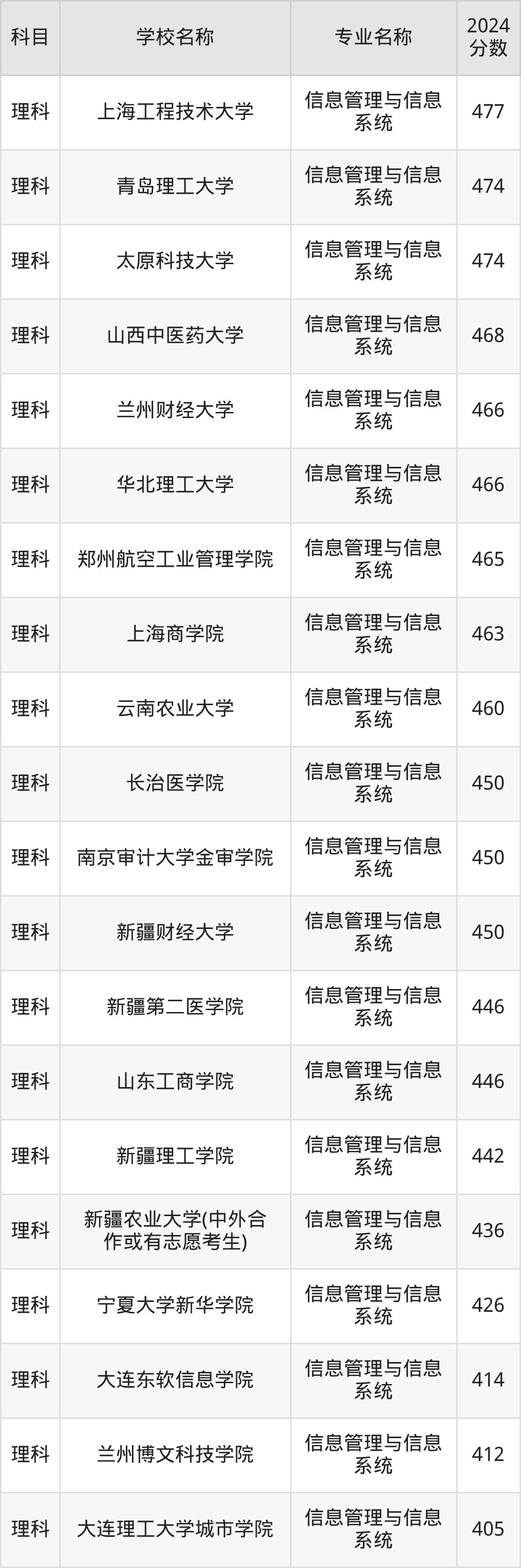 | 西安理工大学 | 信息管理与信息 系统 | 534 |