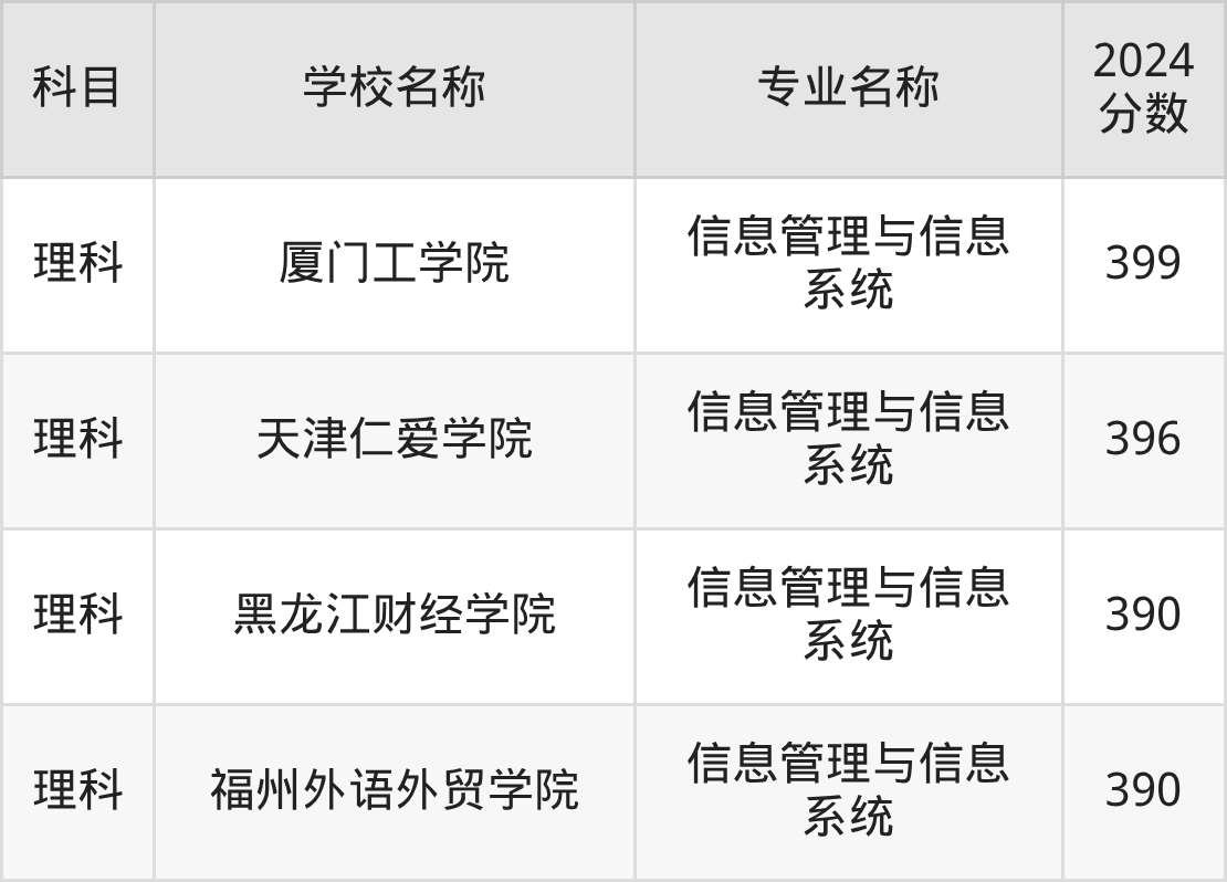 | 陕西科技大学镐京学院 | 信息管理与信息 系统 | 398 |