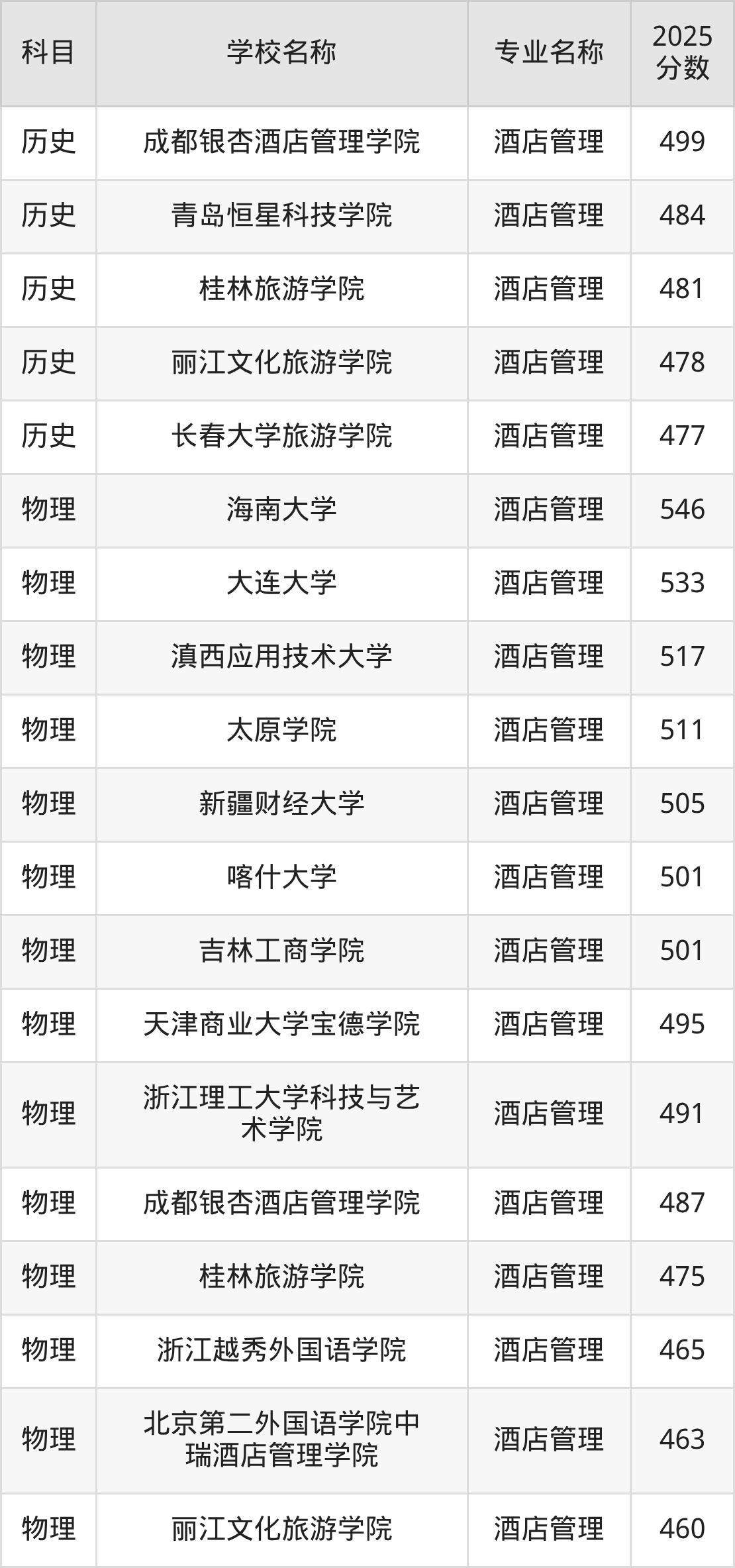河北高考历史组:酒店管理专业的最低分是484分~551分