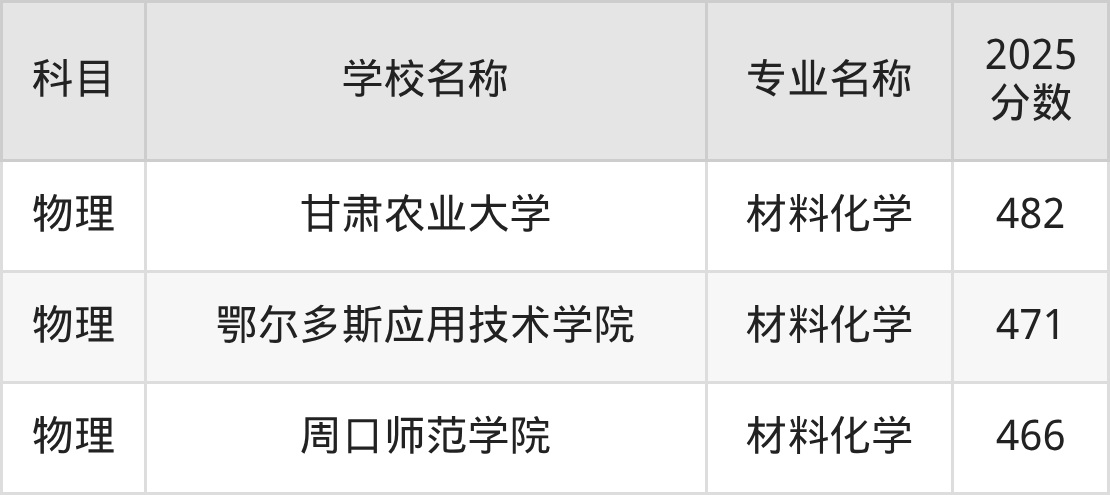 下文将为大家展示山西省大学材料化学专业2025年在山西高考的最低录取分数线!