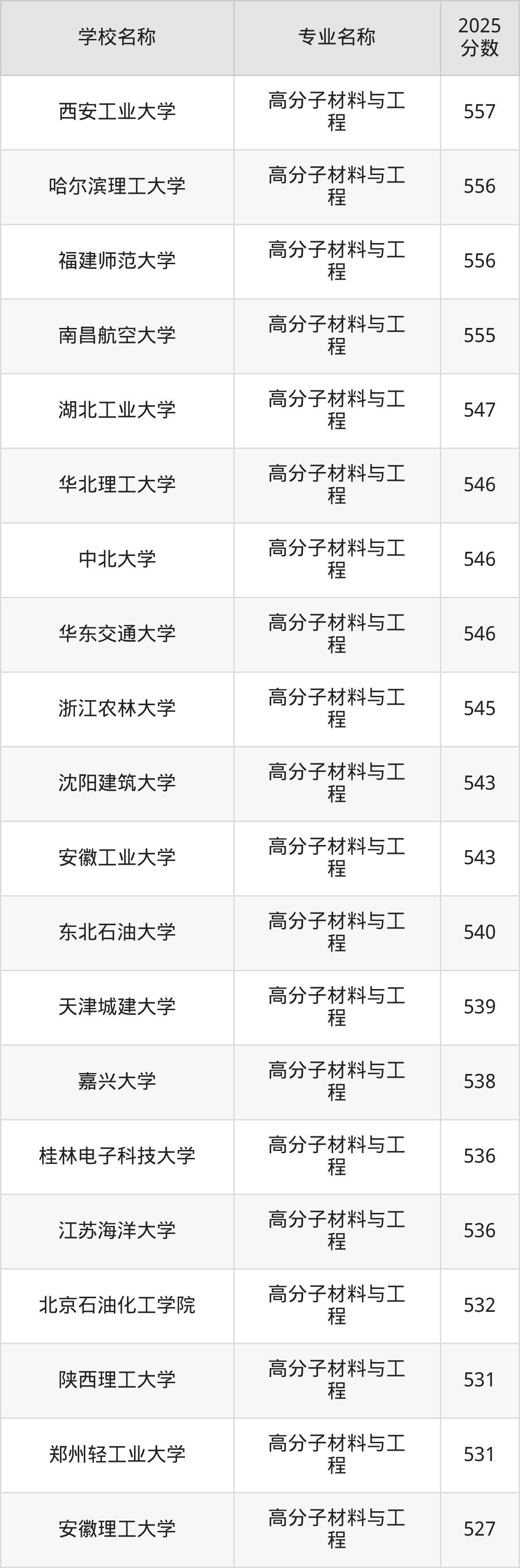 | 青岛科技大学(高密校 区) | 高分子材料与工 程 | 516 |