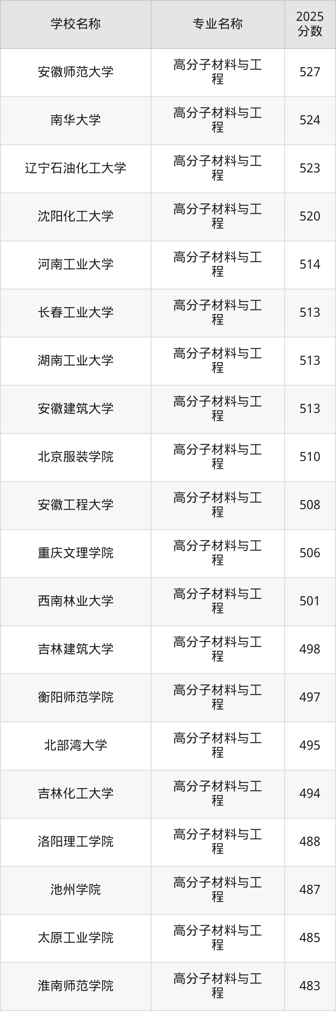 | 齐鲁工业大学(菏泽校 区) | 高分子材料与工 程 | 498 |
