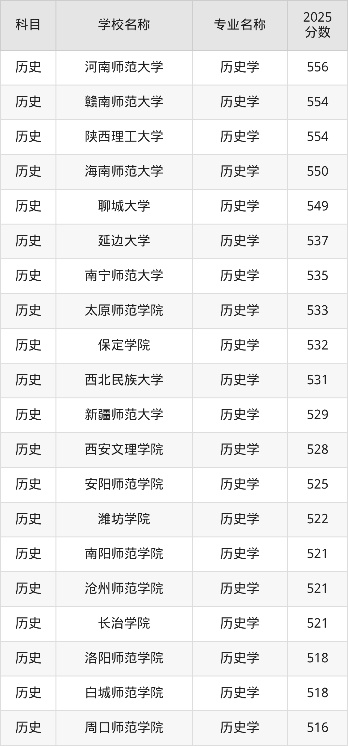 | 沈阳师范大学 | 历史学(师范类) | 557 |