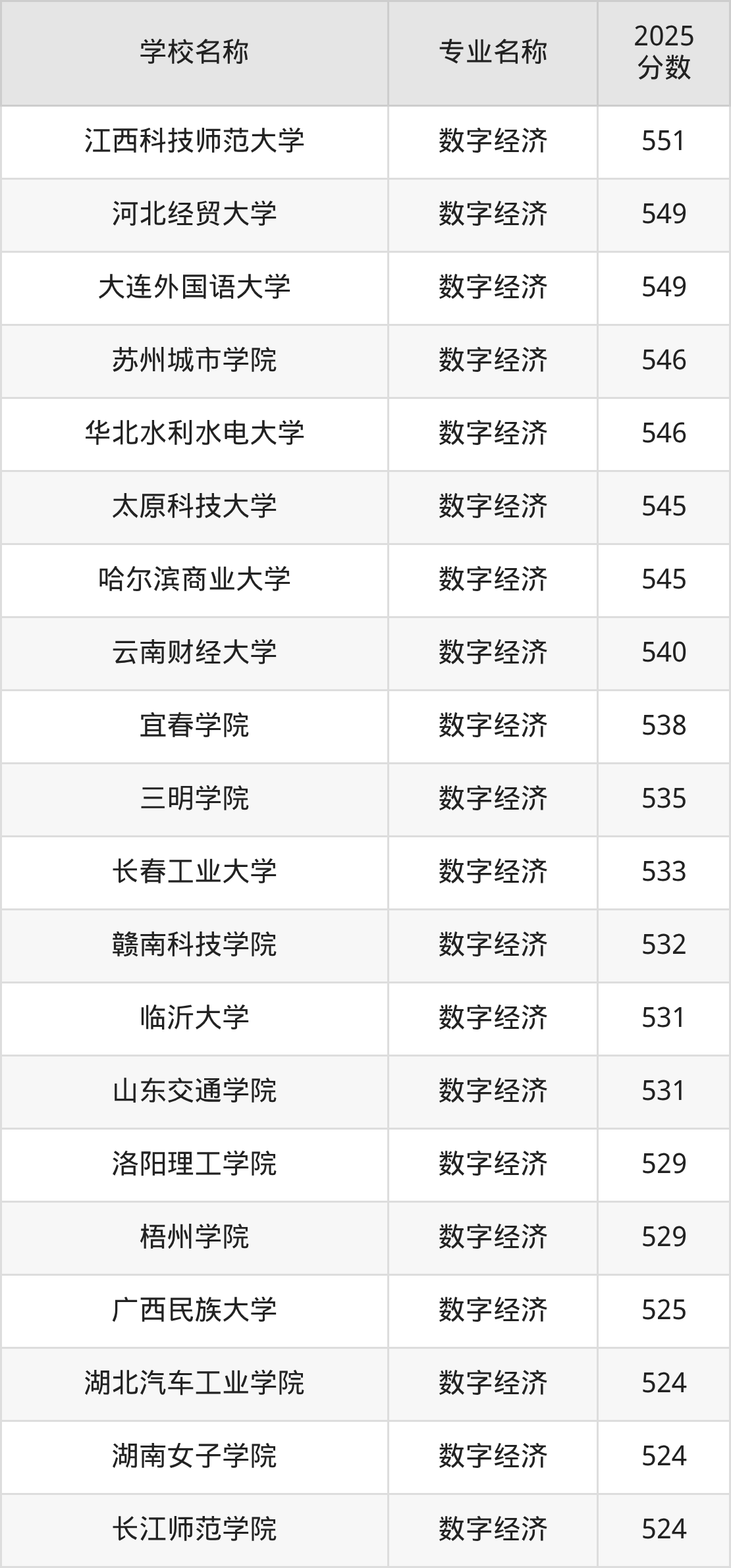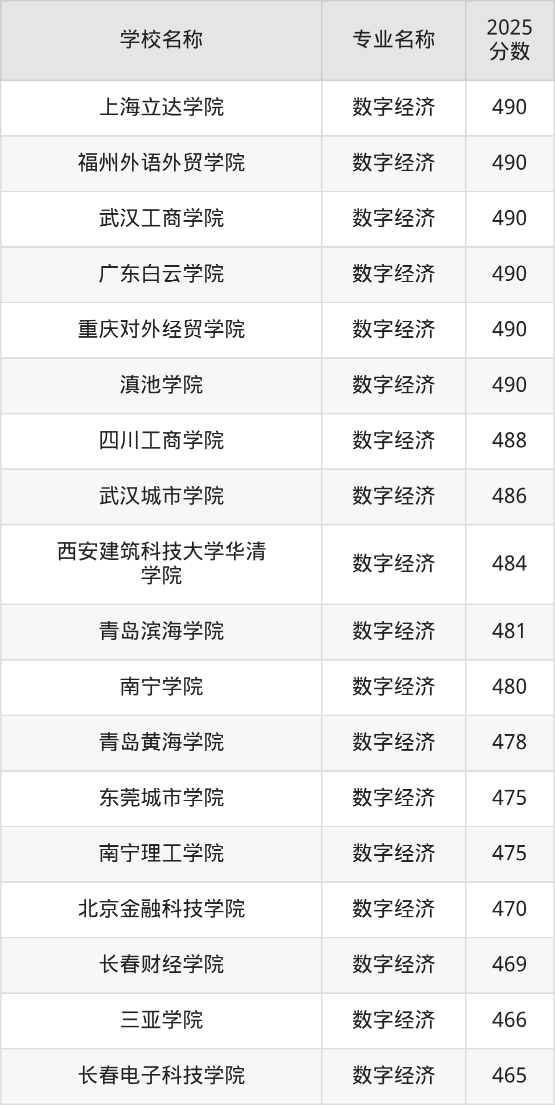 下文将为大家展示浙江省大学数字经济专业2025年在浙江高考的最低录取分数线!