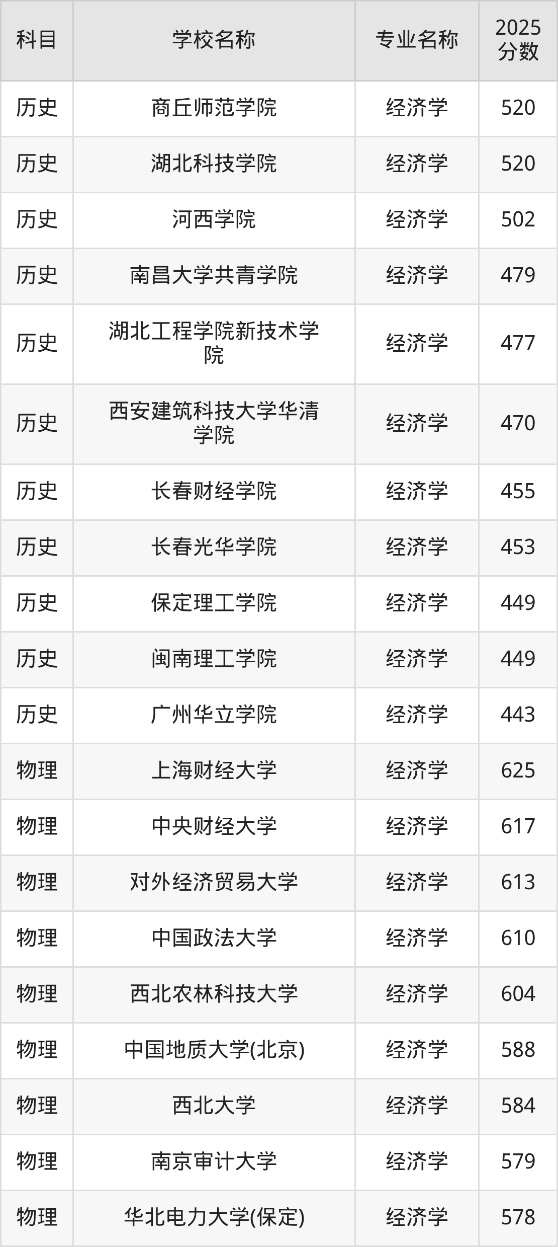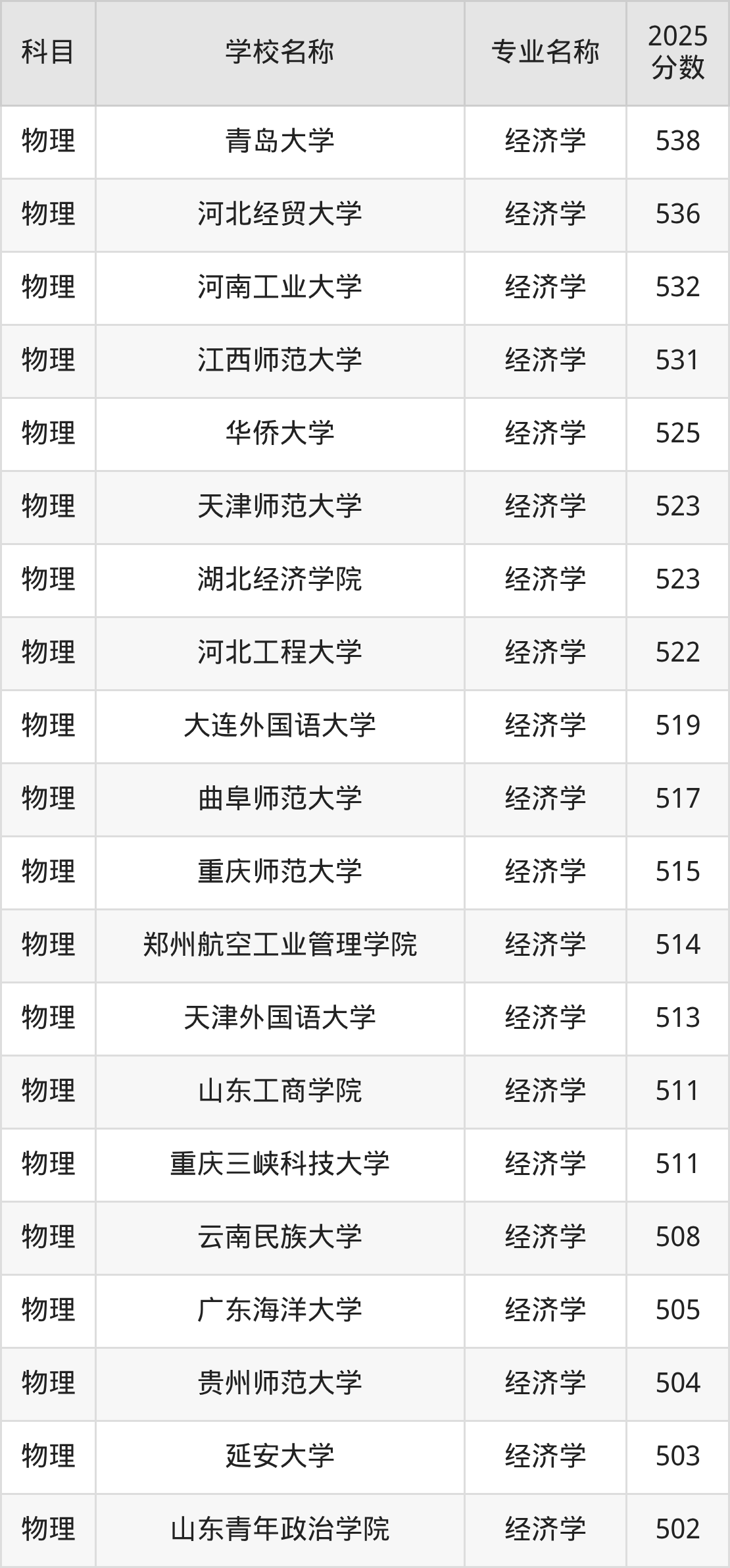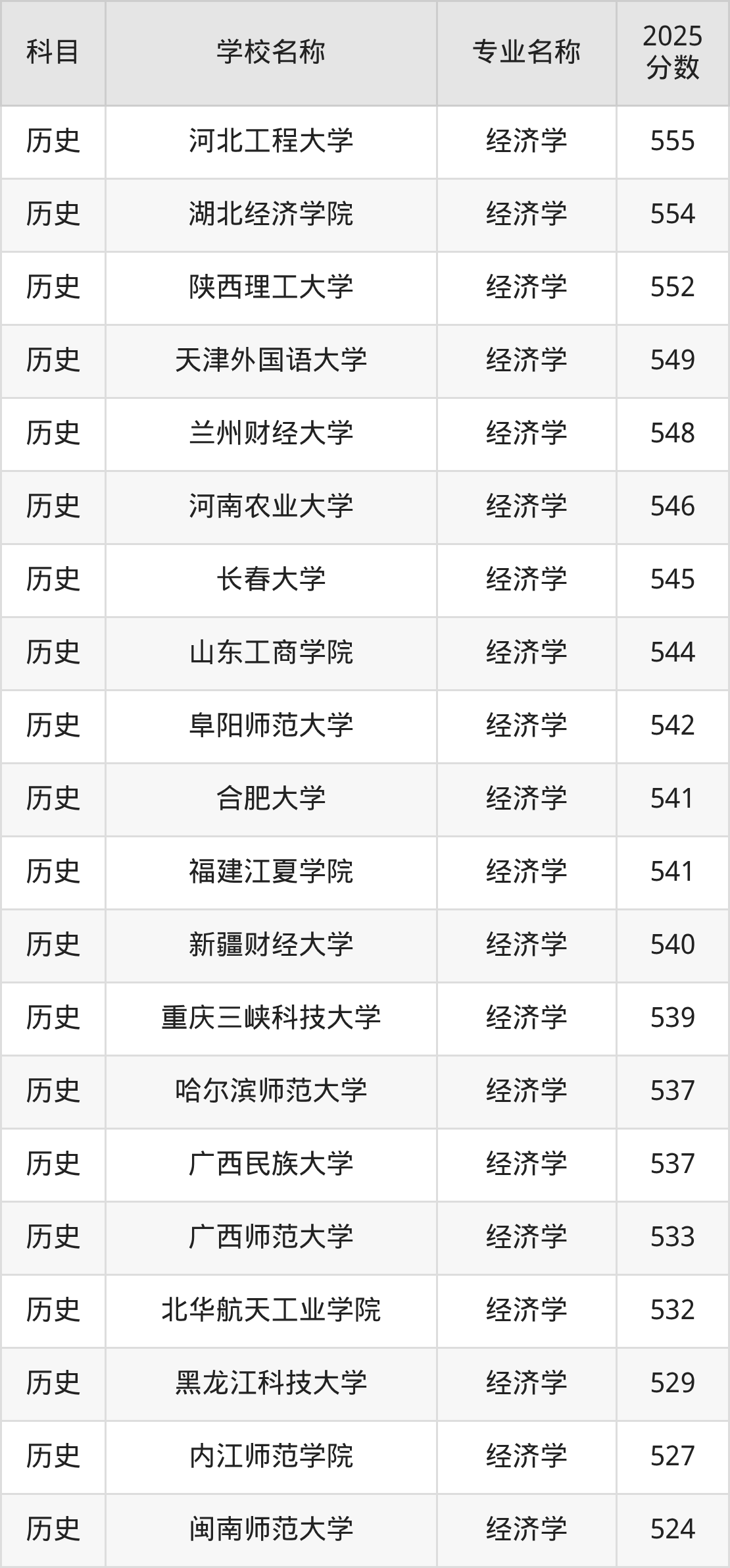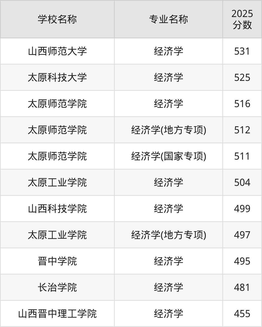 下文将为大家展示山西省大学经济学专业2025年在山西高考的最低录取分数线!