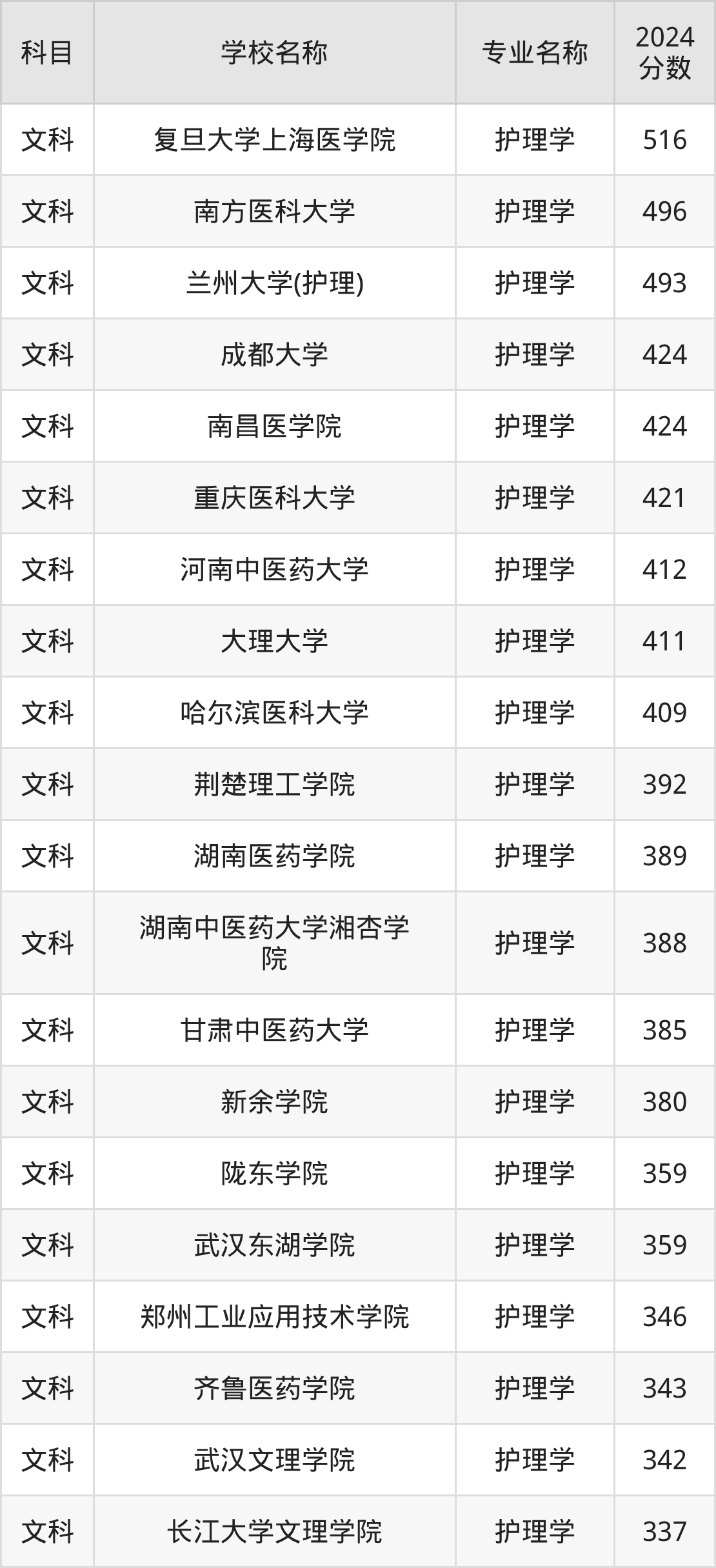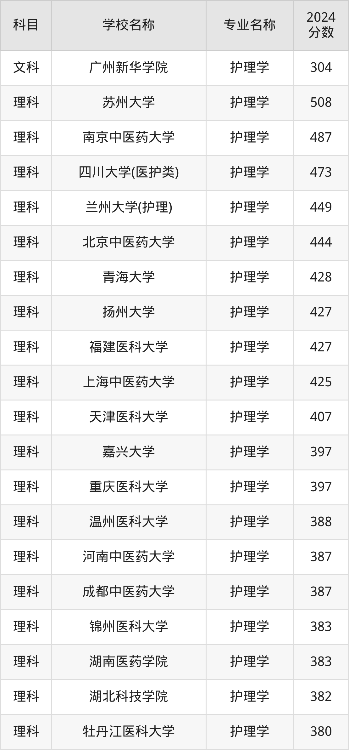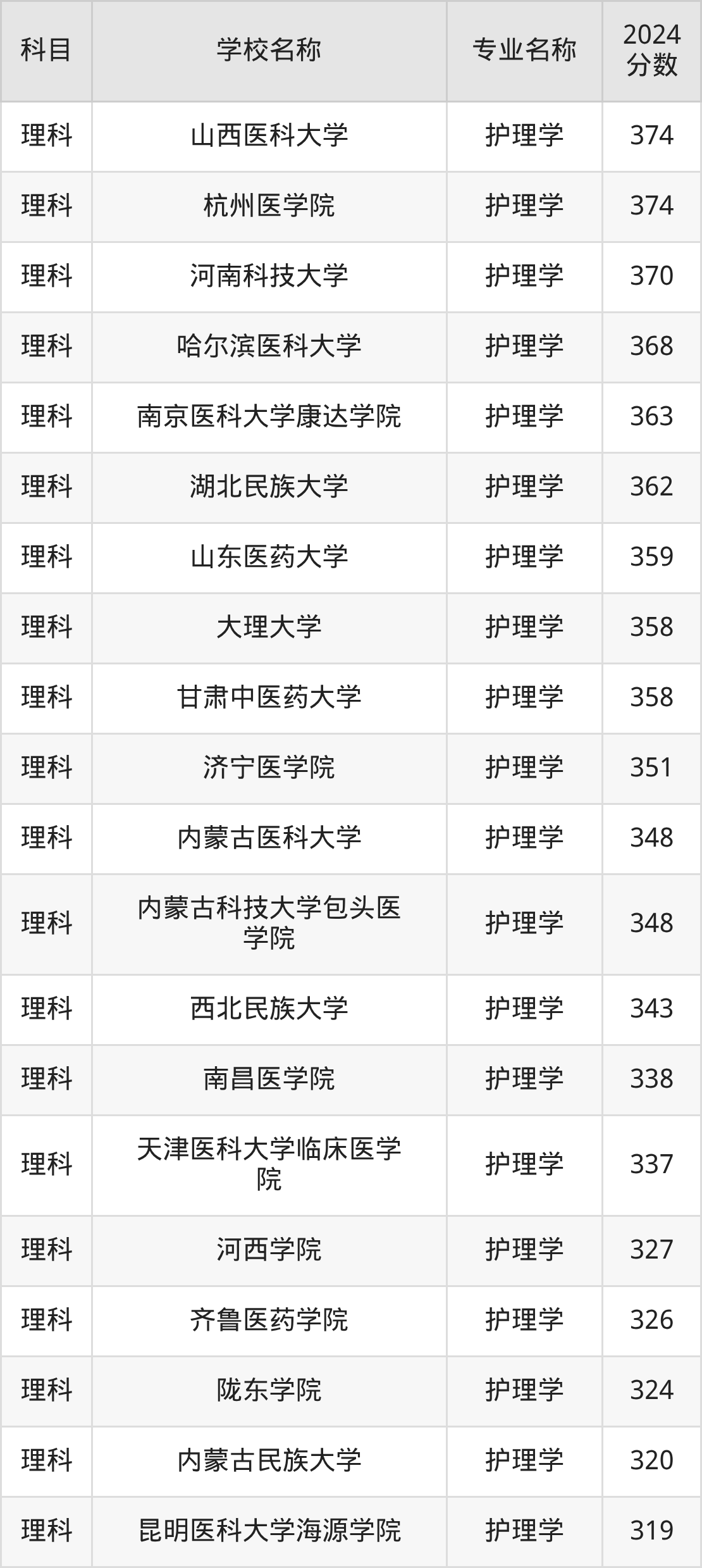 | 新疆医科大学 | 护理学 | 375 |
