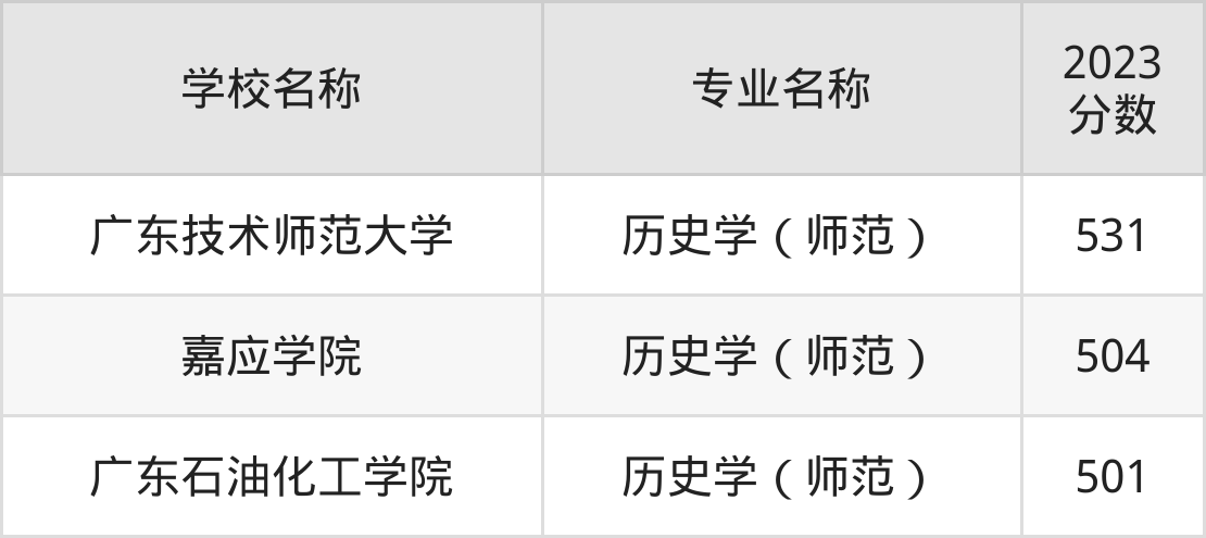下文将为大家展示广东省大学历史学专业2023年在广东高考的最低录取分数线!