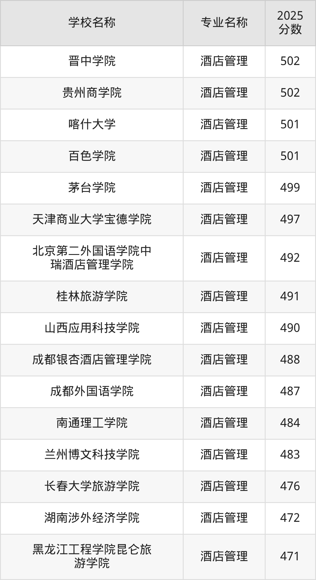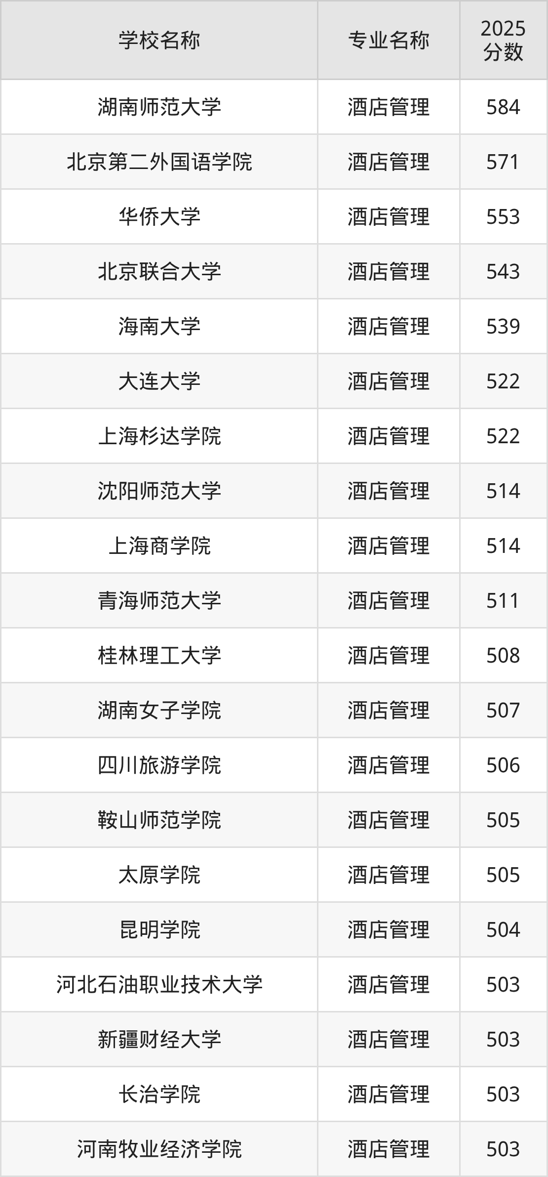 下文将为大家展示山东省大学酒店管理专业2025年在山东高考的最低录取分数线!